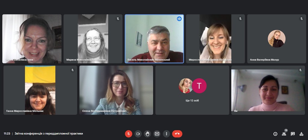 10 грудня 2022 р. на платформі Google Meet відбулася звітна конференція з переддипломної практики студентів другого (магістерського) рівня вищої освіти денної форми навчання спеціальності 291 «Міжнародні відносини, суспільні комунікації та регіональні студії».
