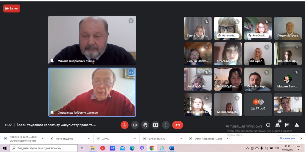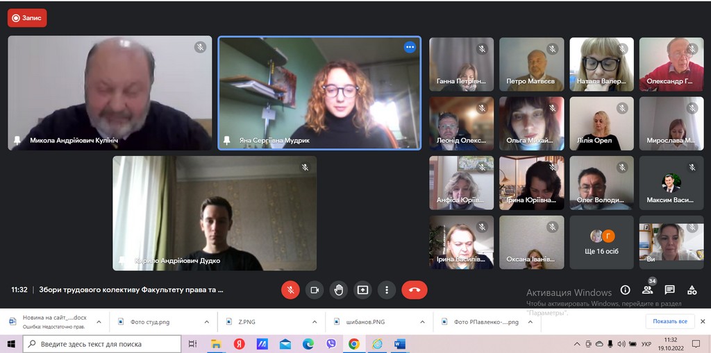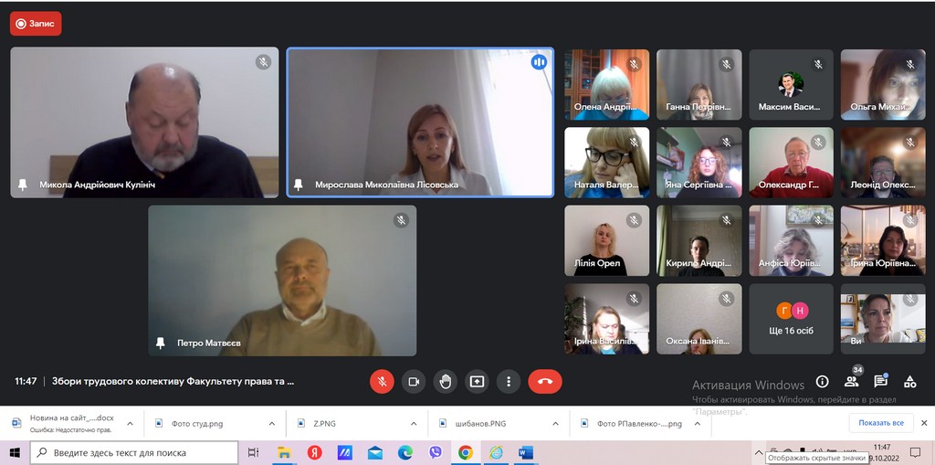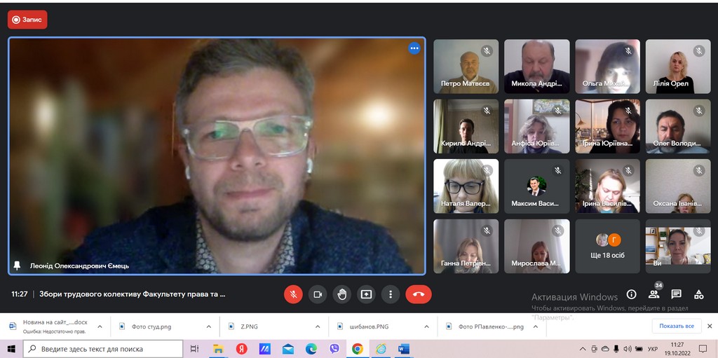 19 жовтня 2022 року відбулися Збори трудового колективу Факультету права та міжнародних відносин, участь в якому взяли працівники факультету та представники студентства. До роботи Зборів долучився проректор з науково-методичної роботи, зв’язків з органами державної влади та місцевого самоврядування Леонід Олександрович Ємець.
