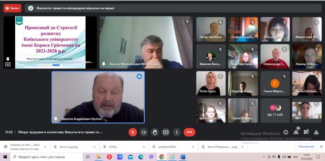 На Зборах трудового колективу було розглянуто питання про надання згоди трудового колективу Факультету права та міжнародних відносин на призначення деканом Факультету права та міжнародних відносин Кулініча Миколи Андрійовича, кандидата історичних наук, доцента, Надзвичайного та Повноважного Посла України, професора кафедри міжнародних відносин КУБГ. Обговорено Пропозиції щодо стратегії розвитку факультету на 2023-2028 роки. Дообрано до складу Вченої ради факультету виборних працівників – професора кафедри міжнародних відносин Цвєткова Олександра Глєбовича, доктора історичних наук, старшого наукового співробітника, Надзвичайного та Повноважного Посла України та професора кафедри публічного права Хатнюк Наталію Сергіївну.