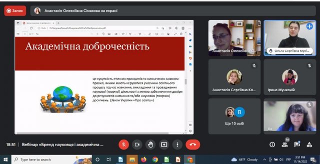 Захід з елементами тренінгу був присвячений розгляду елементів бренду науковця та формуванню академічної доброчесності.
