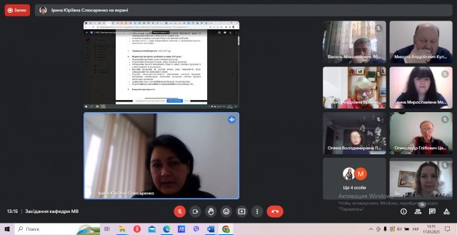 В процесі засідання відбулося обговорення та було рекомендовано до друку рукопис навчально-методичного посібника “Теорія та практика міжнародних переговорів” доцента кафедри, кандидата політичних наук Ольги Виговської. Рецензенти позитивно оцінили представлений текст посібника і його значення для фахової підготовки майбутніх дипломатів. Дякуємо Ользі Сергіївні за пророблену роботу та з приємністю констатуємо, що попри усі труднощі воєнного часу, склад кафедри активно працює та демонструє чудові результати.