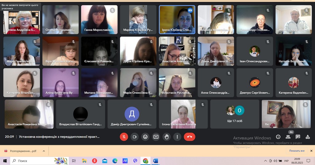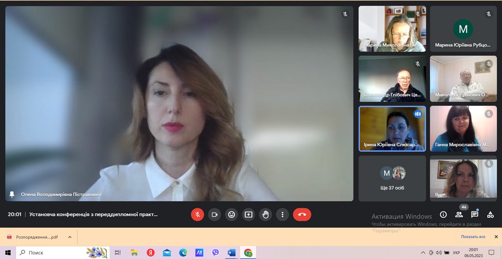 08 травня 2023 року починається передостанній етап виконання освітньо- професійної програми студентів спеціальності 291 Міжнародні відносини, суспільні комунікації та регіональні студії - переддипломна практика. Метою переддипломної практики є узагальнення й удосконалення здобутих студентами знань, практичних умінь і навичок, оволодіння професійним досвідом та збором матеріалів, необхідних для самостійного написання кваліфікаційної бакалаврської роботи, моніторинг та аналіз інформаційних повідомлень ЗМІ, фактів, подій і процесів, присвячених проблематиці бакалаврської роботи, формування переліку використаних джерел та літератури. Базою практики виступає Бібліотека Київського університету імені Бориса Грінченка. Установча конференція з переддипломної практики відбулася 06 травня 2023 року за участю студентів 4 курсу освітніх програм «Суспільні комунікації» та «Регіональні студії», а також їх наукових керівників бакалаврських робіт - викладачів Кафедри міжнародних відносин. Організувала та провела конференцію доцент кафедри міжнародних відносин, кандидат наук з державного управління Олена Пістракевич.