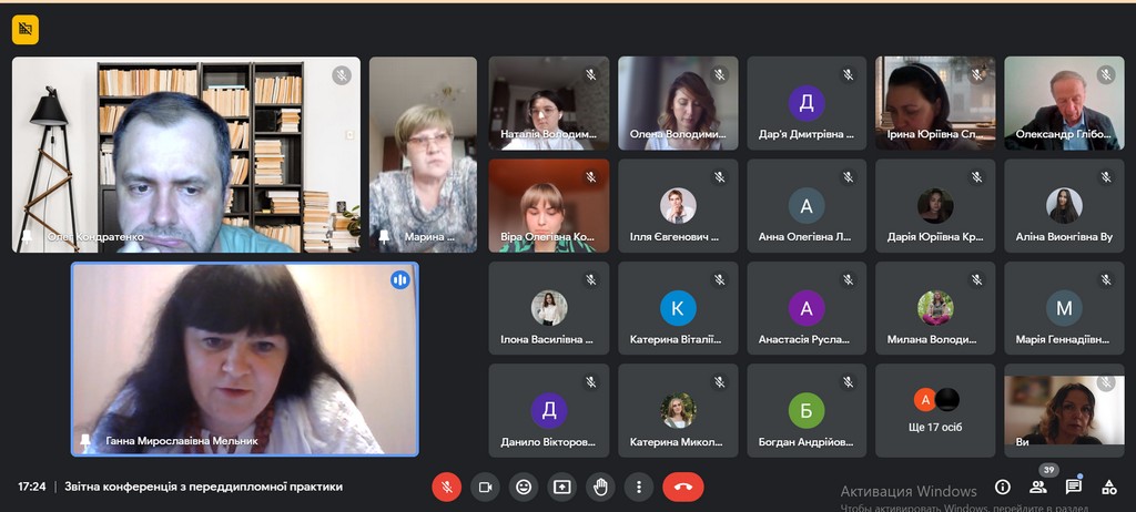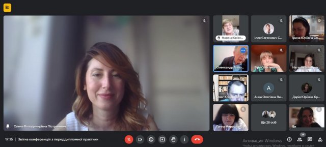 19 травня 2023 року відбулася звітна конференція з переддипломної практики студентів першого (бакалаврського) рівня вищої освіти денної форми навчання, спеціальності 291 «Міжнародні відносини, суспільні комунікації та регіональні студії», освітніх програм «Суспільні комунікації» та «Регіональні студії». Практика проходила з 08 травня 2023 року по 17 травня 2023 року на базі Бібліотеки Київського університету імені Бориса Грінченка. Метою переддипломної практики є узагальнення й удосконалення здобутих студентами знань, практичних умінь і навичок, оволодіння професійним досвідом та збором матеріалів, необхідних для самостійного написання кваліфікаційної бакалаврської роботи, моніторинг та аналіз інформаційних повідомлень ЗМІ, фактів, подій і процесів, присвячених проблематиці бакалаврської роботи, формування переліку використаних джерел та літератури, перевірка робіт на унікальність. В процесі проходження практики, співробітники Бібліотеки допомогли студентам у пошуку та зборі інформації, необхідної для завершення написання кваліфікаційної бакалаврської роботи, остаточному оформленні робіт та перевірці їх на плагіат. У процесі звітної конференції студенти прозвітували про форми роботи та завдання, які вони виконували під час практики, поділилися враженнями від її проходження. Участь у конференції прийняли студенти ІV курсу, груп РСб-1-19-4.0д та СКб-1-19-4.0д, а також керівники практики від університету Кулініч М.А., Яблонський В.М., Цвєтков О.Г., Мельник Г.М., Виговська О.С., Ілюк Т.В., Ржевська Н.Ф., Рубцова М.Ю., Слюсаренко І.Ю., Пістракевич О.В., Бессонова М.М., Брайчевська О.А., Кондратенко О.Ю., Лісовська М.М., Ожеван М.А. Звітну конференцію по переддипломній практиці організувала та провела кандидат наук з державного управління, доцент кафедри міжнародних відносин Факультету права та міжнародних відносин Олена Пістракевич.
