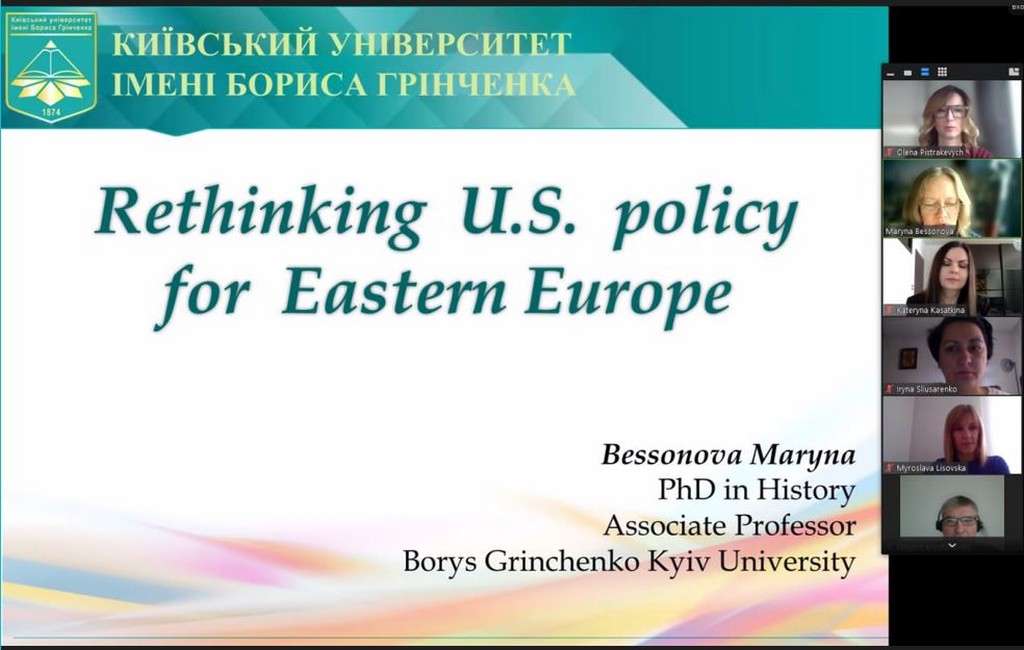 26 жовтня 2023 р. доцент кафедри міжнародних відносин Київського університету імені Бориса Грінченка Марина Миколаївна Бессонова була запрошена до Університету Коменського в Братиславі (Словаччина) провести гостьову лекцію. Ініціатива надійшла від викладачів Факультету соціальних та економічних наук цього закладу вищої освіти. Лекція на тему «Переосмислення політики США щодо Східної Європи» була проведена для студентів другого курсу магістерської програми «Європейські студії» (European Studies) в рамках дисципліни «Зовнішня політика США» (U.S. Foreign Policy).