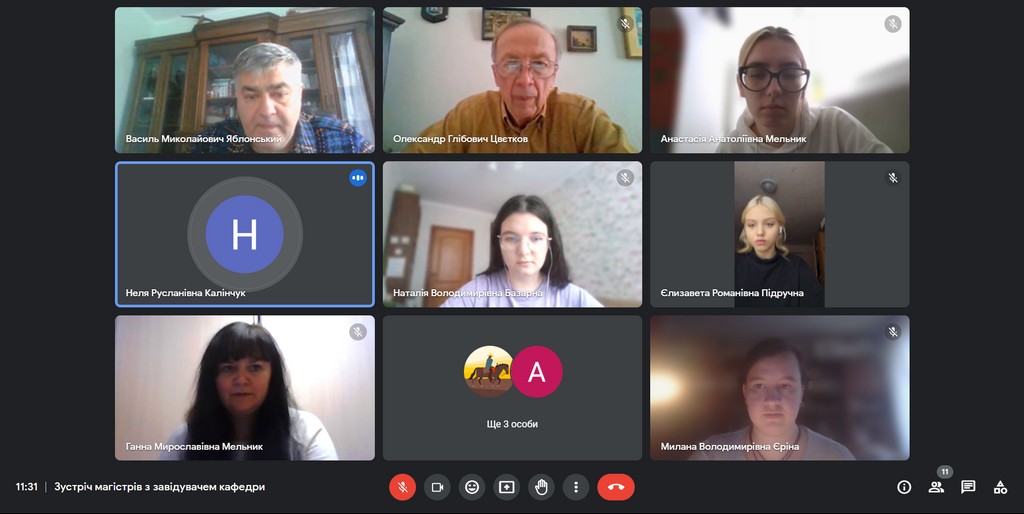 22 листопада 2023 року завідувач кафедри міжнародних відносин, гарант ОП “Суспільні комунікації”, докт. істор. наук, проф. Яблонський В.М., гарант ОП “Регіональні студії”, докт. іст. наук, проф. Цвєтков О.Г. і заступник завідувача кафедри міжнародних відносин, канд. іст. наук, доцент Мельник Г.М. зустрілись зі здобувачами 1 року навчання освітньо-професійних програм “Суспільні комунікації” та “Регіональні студії” другого (магістерського) рівня вищої освіти. Під час зустрічі обговорили актуальні питання, які виникають під час освітнього процесу. Гаранти освітніх програм наголосили на необхідності активізації написання магістрами курсових робіт. Ганна Мирославівна звернула увагу на те, що захист курсових робіт відбудеться 07 грудня 2023 р., а також нагадала, що наближається кінець першого семестру і 11 грудня2023 р. розпочнеться екзаменаційна сесія.