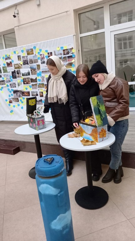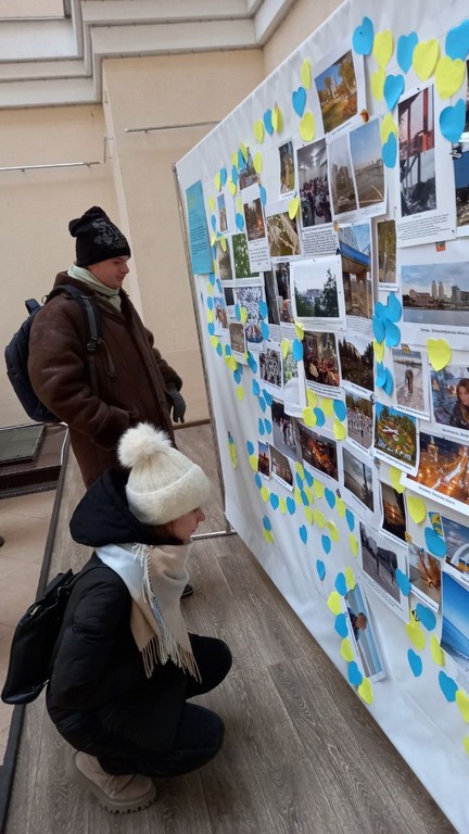 21 листопада 2023 року кандидат історичних наук, доцент, доцент кафедри міжнародних відносин, куратор групи СКб-1-22.4Од Ганна Мельник разом зі здобувачами 2 року навчання освітньої програми “Суспільні комунікації” відвідали виставку “Місця щасливих людей”, яку організували студенти-грінченківці, які незважаючи на умови воєнного стану, мають сили мріяти і бажання творити добро. На виставці представлено декілька цікавих експозицій: панно, на якому студенти відобразили свої рідні міста і села, деякі з яких є окупанованими на сьогоднішній день, проте у їхній пам’яті вони залишились, як місця щасливих людей, а також інсталяція з використаних військових атрибутів, які перетворені на витвори мистецтва.