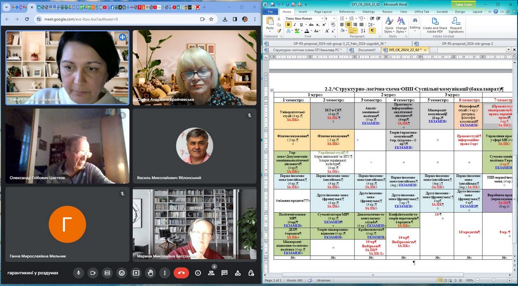Першими кроками стали засідання робочих груп, на яких були узагальнені пропозиції, які надійшли упродовж 2021-2023 рр. через анкетування та опитування різних груп стейкхолдерів. Наступним кроком перегляду освітніх програм стало обговорення проєкту оновлення бакалаврських освітніх програм на засіданні кафедри.