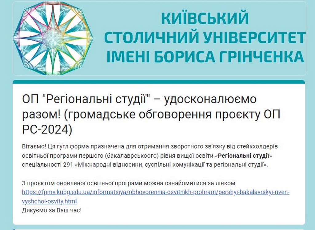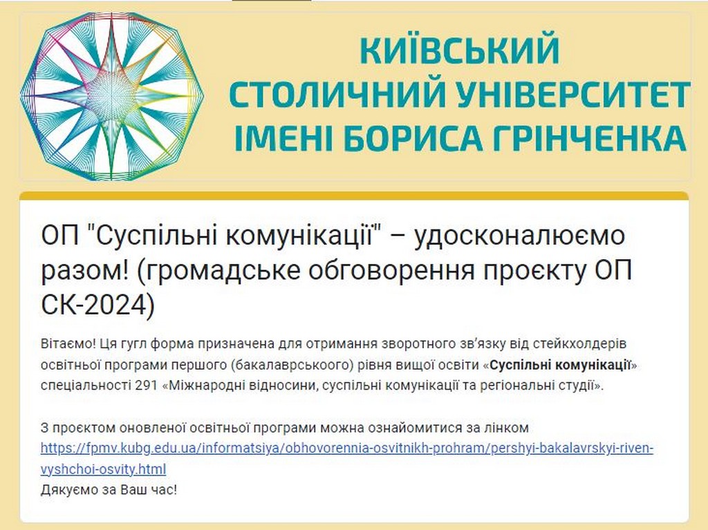 Оновлення змісту освітніх програм є запорукою забезпечення якості освіти, тож на кафедрі міжнародних відносин Київського столичного університету імені Бориса Грінченка розпочався черговий етап перегляду освітніх програм першого (бакалаврського) рівня вищої освіти «Суспільні комунікації» та «Регіональні студії».