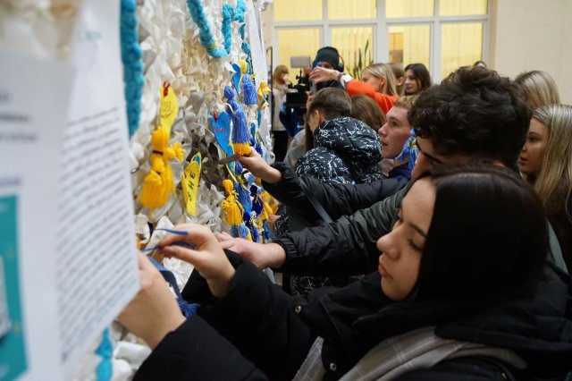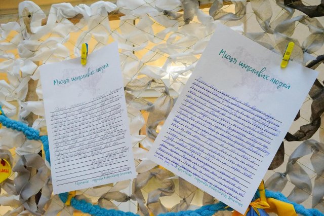 Цьогорічний проєкт ми присвячуємо захисту тих, хто оберігає нас і бореться за кожен метр рідної української землі – нашим Героям. Мрії про Перемогу і мирну Україну студенти демонструють через експозицію «Місця щасливих людей: захист для Героїв!» – велику захисну сітку, яку сплели під наставництвом методиста Студентського офісу №1, представниці Благодійного фонду «Волонтери ЛАД» Юлії Поліщук.