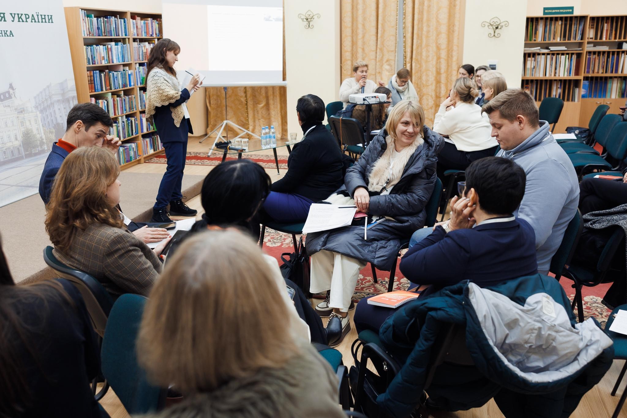 Крім того, в межах заходу відбулася презентація діяльності Українського інституту. Ключові проєкти представила заступниця гендиректора Українського інституту Тетяна ФІЛЕВСЬКА. З практичними аспектами реалізації культурних проєктів присутніх ознайомила керівниця комунікаційного відділу установи Ксенія КАЛИНА. А завідувачка відділу аналітично-дослідної роботи Олена КОВАЛЕНКО промодерувала групові обговорення запропонованих силабусів освітніх програм, експертизу яких здійснили учасники воркшопу.