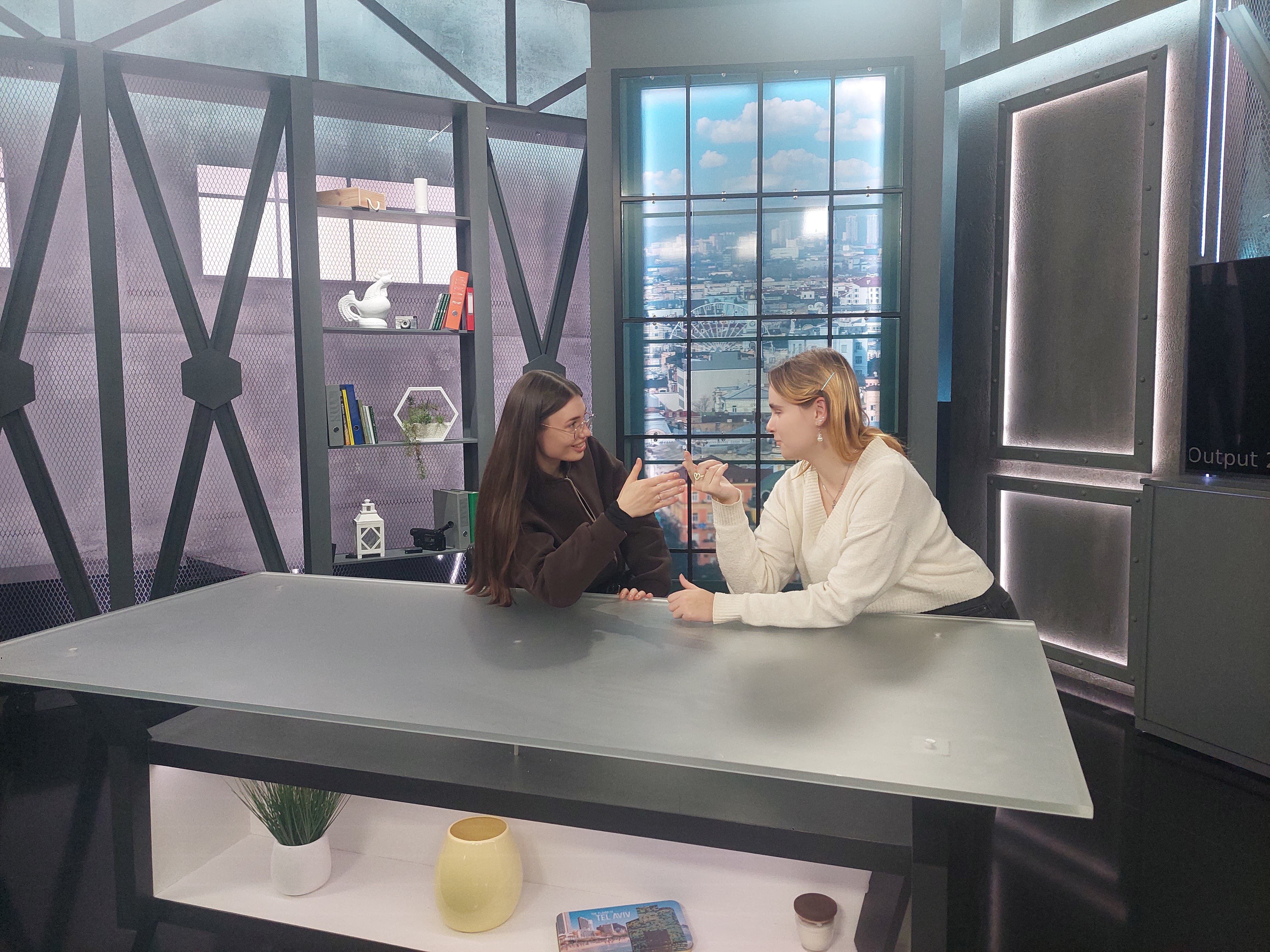 З величезним інтересом студенти відвідали студію телеканалу під час трансляції прямого ефіру, де змогли наочно спостерігати за роботою телеведучої, та костюмерні каналу, де Ірина ГЛАВАЦЬКА показала студентам вбрання для ефірів та коротко розповіла про правила добору костюмів для роботи в кадрі.