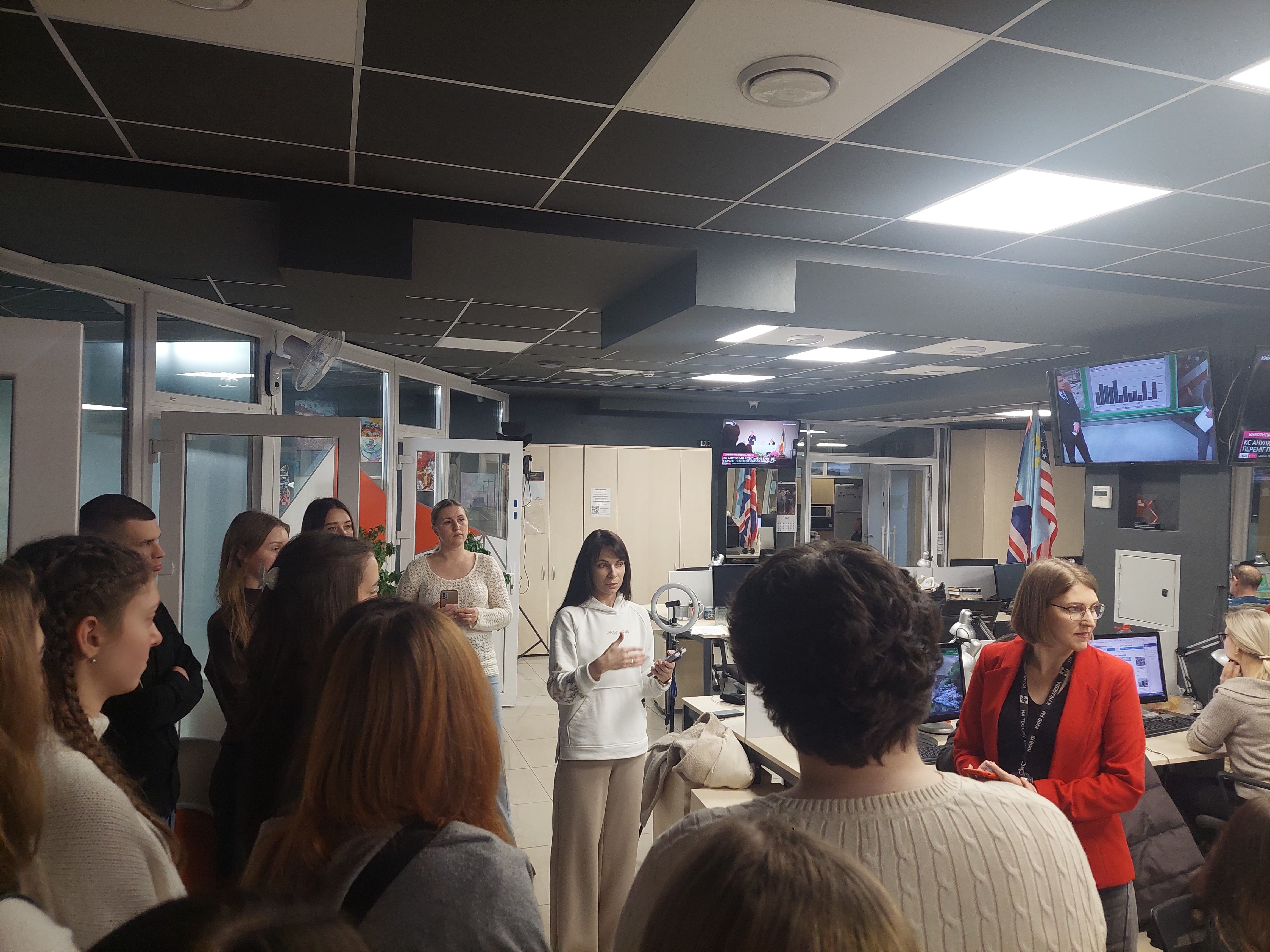 Це вже друге знайомство студентів-міжнародників, організоване керівницею Інформаційно-аналітичного центру ФПМВ, доценткою кафедри міжнародних відносин, кандидаткою історичних наук Тетяна ІЛЮК задля поглиблення спеціальних компетентностей здобувачів в рамках діяльності Інформаційно-аналітичного центру. Ознайомлення студентів із потойбіччям телекомунікацій стало можливим завдяки налагодженому партнерству із ТК «Київ» та завдячуючи благодійній ініціативі телеканалу «Екскурсії за донат на ЗСУ», кошти від якої перераховуються на потреби української армії.