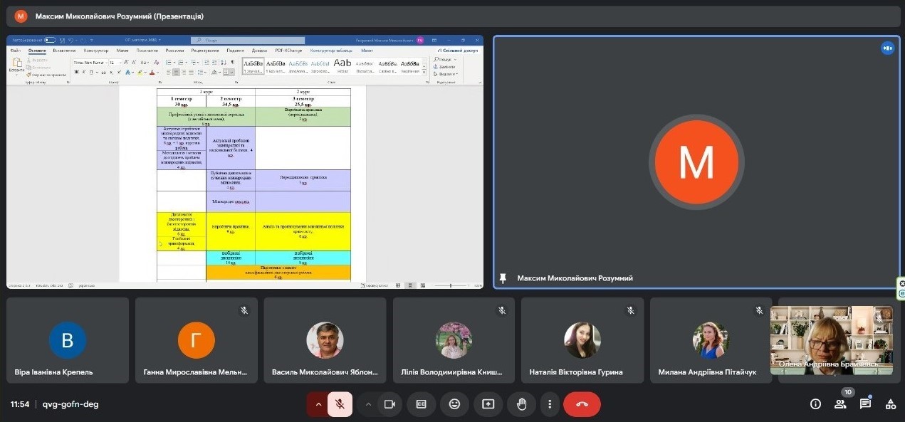 Максим РОЗУМНИЙ, доктор політичних наук, професор кафедри міжнародних відносин, керівник проєктної групи з розроблення нової освітньої програми «Міжнародні відносини та дипломатія» представив проєкт нової освітньої програми для магістрів.