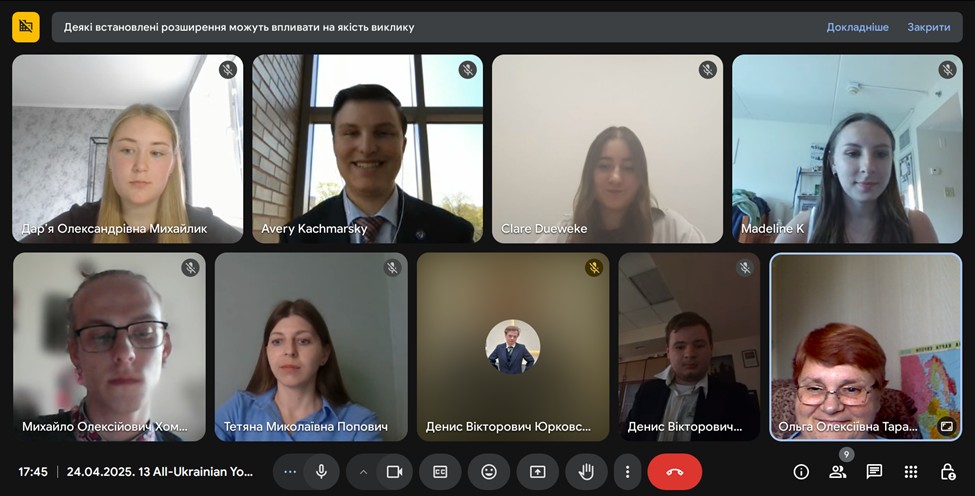 24 квітня 2025 року студент 3-го курсу ОП «Суспільні комунікації», лаборант кафедри міжнародних відносин Денис Юрковський та студентка 1-го курсу ОП «Суспільні комунікації» Дар'я Кириленко взяли участь у роботі ХІІІ Всеукраїнської науково-практичної конференції молодих учених із міжнародною участю «Українська минувшина: війни за ідентичність і незалежність». Конференція, яка об’єднала науковців та студентів українських та закордонних закладів вищої освіти, відбулася у Київському столичному університеті імені Бориса Грінченка, на базі кафедри історії України Факультету суспільно-гуманітарних наук.