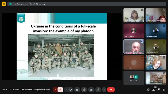 Презентуючи здобутки молодих вчених Денис Юрковський виступив з доповіддю «Українські меми як засіб формування національної стійкості», в якій розкрив роль мемів часів російсько-української війни як засобу психологічної розрядки та протидії ворожій пропаганді.