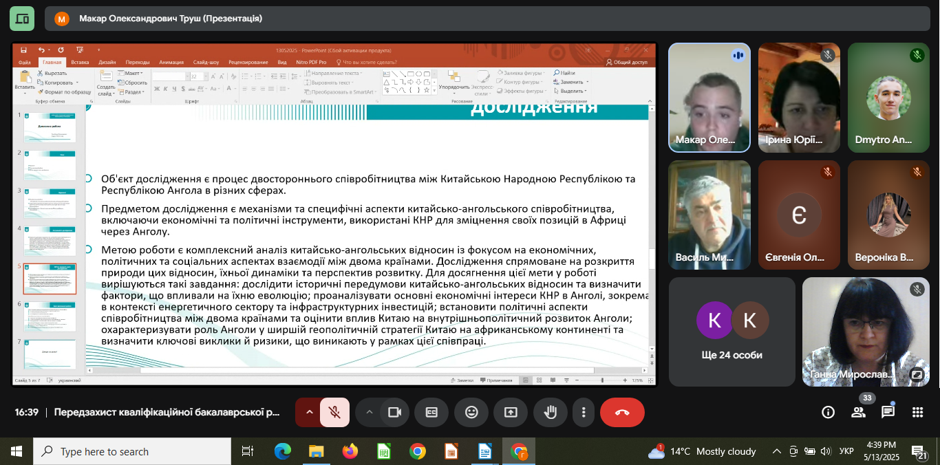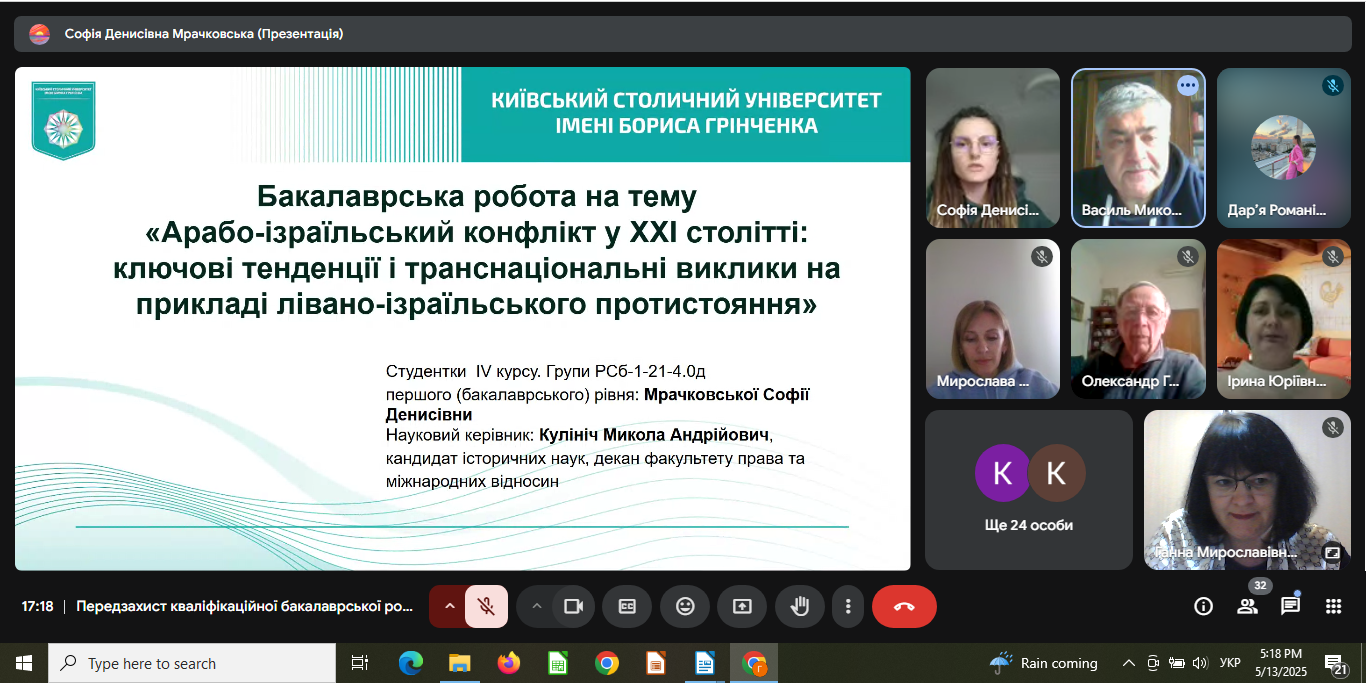 13 травня 2025 року відбулося засідання кафедри міжнародних відносин, під час якого було проведено попередній захист бакалаврських робіт студентів 4-го курсу першого (бакалаврського) рівня вищої освіти ОПП «Регіональні студії».