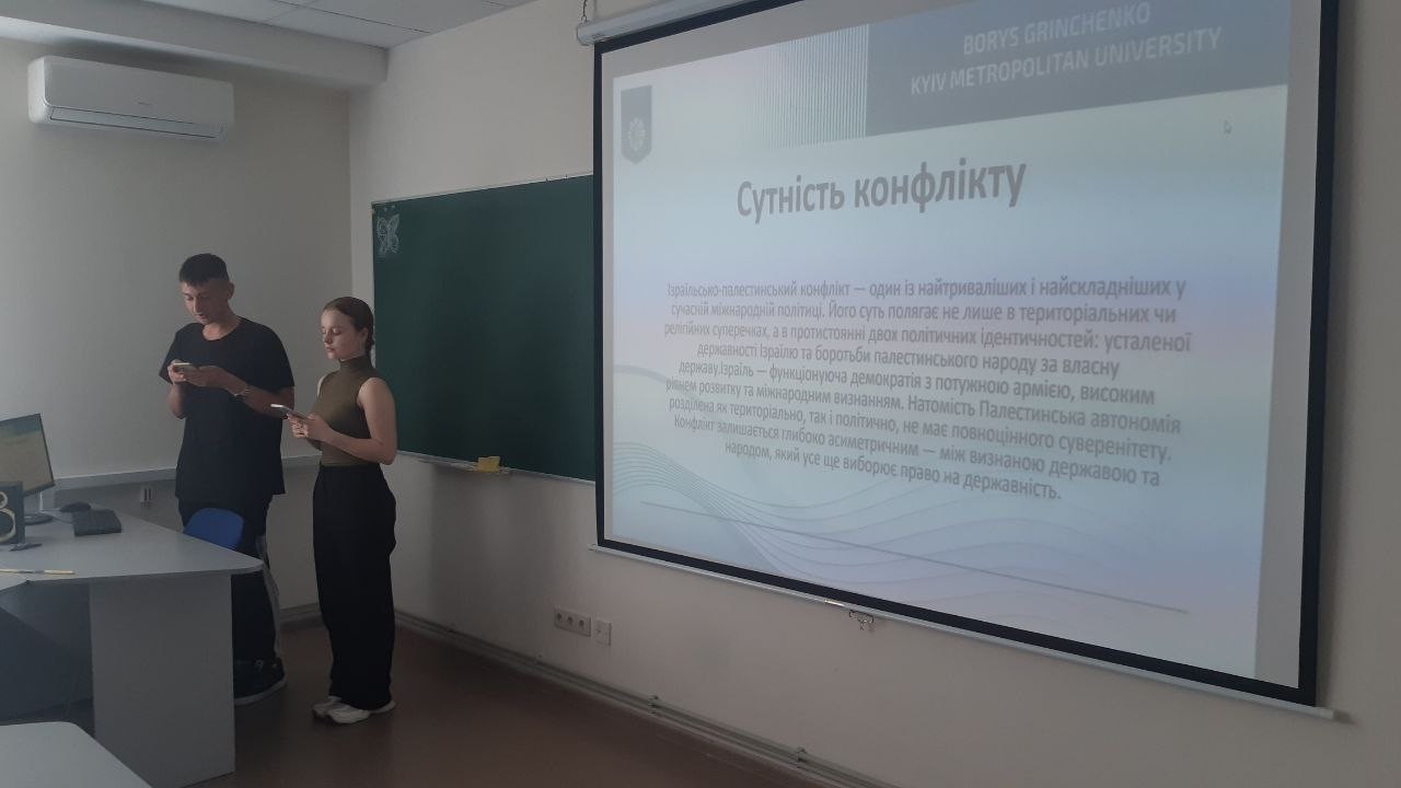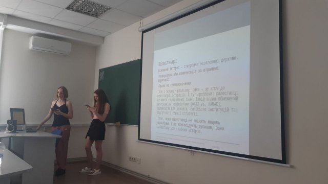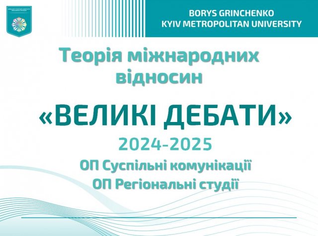 «Великі дебати» в рамках дисципліни «Теорія міжнародних відносин» вже стали традицією для здобувачів освітніх програм «Суспільні комунікації» та «Регіональні студії» першого (бакалаврського) рівня вищої освіти. Такий формат практичних занять дозволяє студентам застосувати здобуті теоретичні знання на практиці: проаналізувати з позицій різних парадигм обраний міжнародний конфлікт, який кожна група визначала самостійно шляхом голосування. У 2024/2025 навчальному році здобувачі освітньої програми «Суспільні комунікації» обрали для розгляду російсько-українську війну, а здобувачі освітньої програми «Регіональні студії» – ізраїльсько-палестинський конфлікт. На «дебатах» змагалися представники політичного реалізму, політичного лібералізму, а також прибічники геополітичного та цивілізаційного підходів.