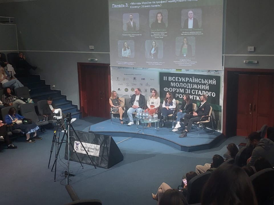 Форум об’єднав лідерів бізнесу, екоактивістів та прогресивну молодь, надавши їм можливість обговорити майбутнє ринку праці та роль молоді у зеленій трансформації України, навички та компетентності, затребувані на сучасному ринку праці, дізнатися про можливості стажувань та міжнародних програм. Учасники відвідали панельні дискусії від провідних українських спікерів та поспілкувалися із представниками міністерств, молодіжних рад, бізнесу, фінансових установ, навчальних закладів, громадських організацій та експертів у сфері сталого розвитку. Також студенти долучилися до ярмарку, де мали змогу поспілкуватися з роботодавцями з різних бізнесів та компаній щодо можливостей працевлаштування та стажування.
