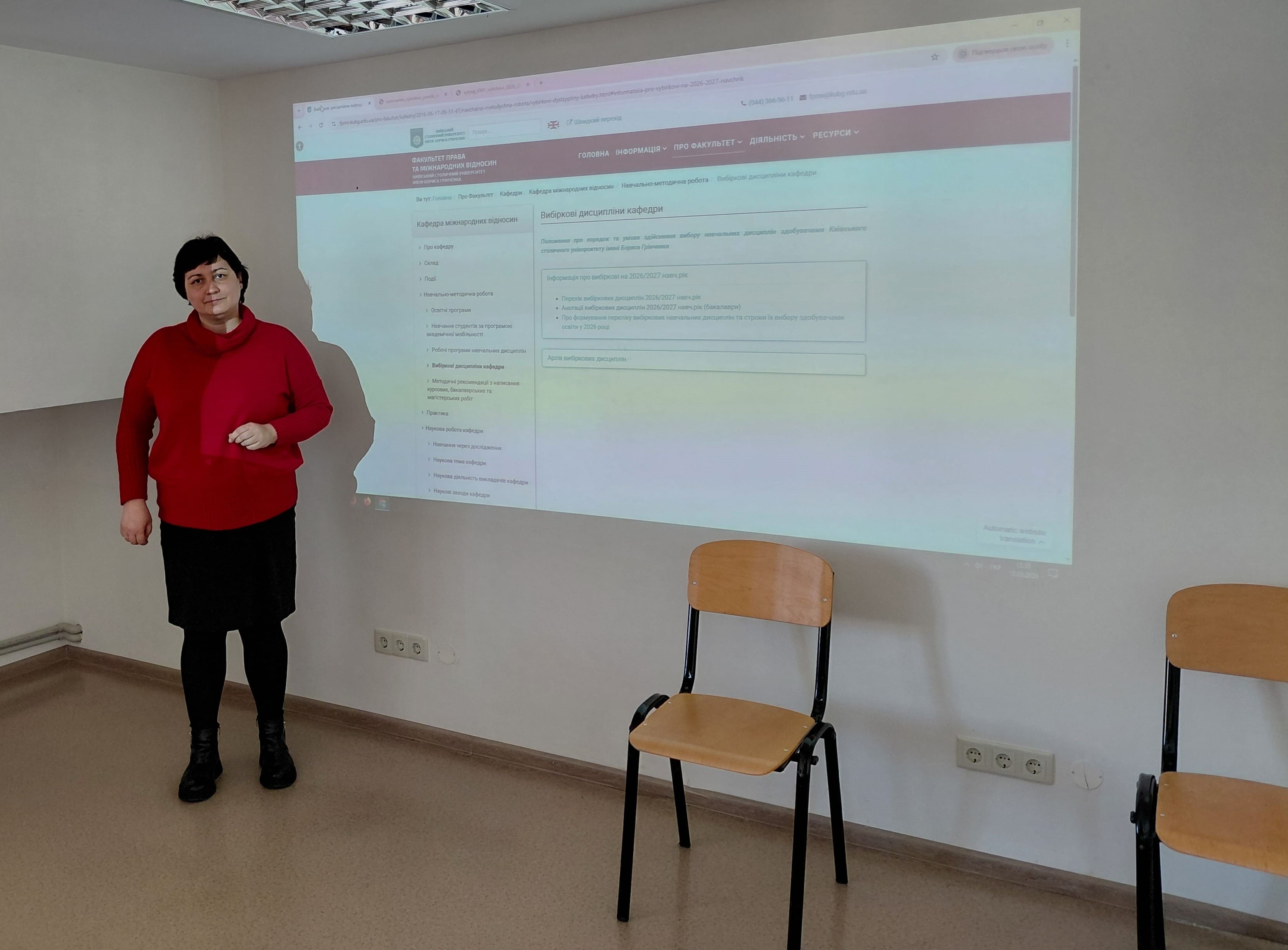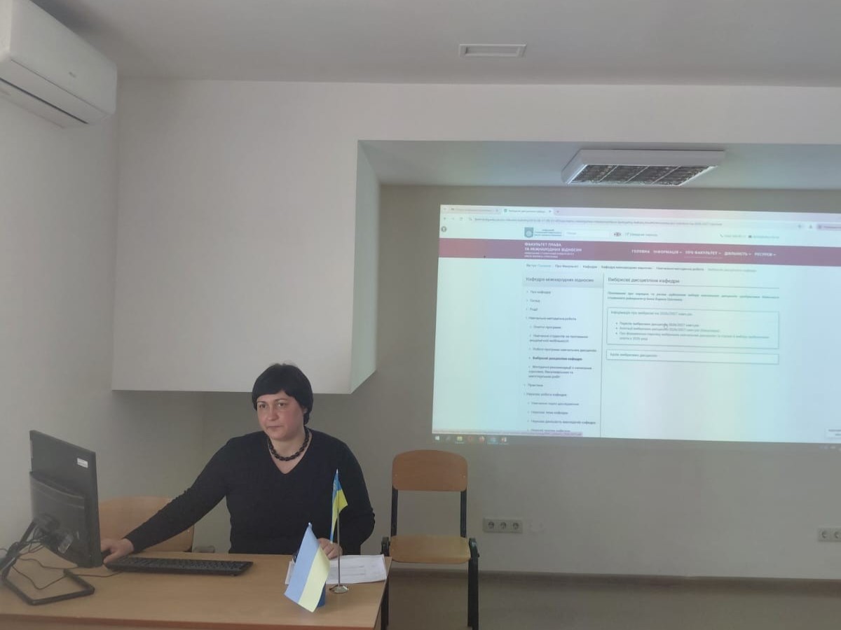 Ірина Юріївна ознайомила здобувачів з основною інформацією про порядок та умови вибору навчальних дисциплін, термінами основних етапів вибору на наступний навчальний рік, каталогом вибіркових дисциплін та пропозиціями кафедри міжнародних відносин. Упродовж консультації здобувачі мали можливість поставити уточнювальні запитання, з’ясувати технічні деталі доступу до каталогу та нюанси процедури вибору, яка відбувається відповідно до Положення про порядок та умови здійснення вибору навчальних дисциплін здобувачами Київського столичного університету імені Бориса Грінченка.