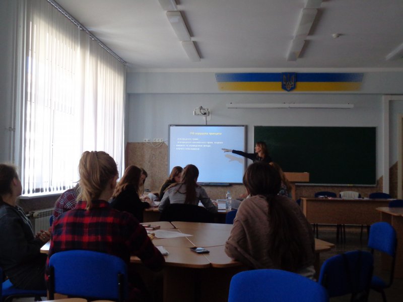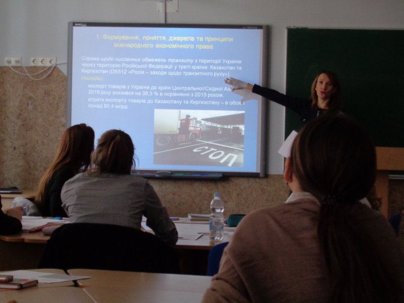 30 березня 2017 р. відбулася відкрита лекція з дисципліни «Міжнародне право» на тему «Міжнародне економічне право» професора кафедри міжнародних відносин та міжнародного права, кандидата юридичних наук Тимченко Ліліани Олексіївни. Студенти були ознайомлені з основними поняттями, концепціями, джерелами міжнародного економічного права; активно обговорювали справу щодо численних обмежень транзиту з території України через територію Російської Федерації у треті країни, з приводу якої 9 лютого 2017 р. Україна направила в Світову організацію торгівлі вимогу про створення группи експертів; аналізували проблеми міжнародно- правового регулювання окремих видів міжнародної економічної діяльності.