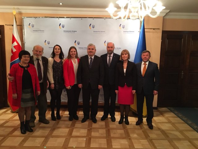 У рамках програми перебування делегація взяла участь у роботі наукового круглого столу «Україна – Словаччина: розвиток двосторонніх відносин та дійові особи», присвяченого 100-річчю української дипломатії. Круглий стіл відбувся 14 листопада 2017 року у Посольстві України в Словацькій Республіці в м. Братислава. У заході взяли участь українські та словацькі історики, науковці, політологи, представники МЗС Словацької Республіки, мас-медіа, студенти, члени української громади. Із промовою перед присутніми виступив Посол України в Словацькій Республіці Ю.Мушка, який звернув увагу на складну історію зовнішньополітичної служби України, виникненні та становленні МЗС України. Окремо Посол зупинився на питанні розвитку українсько-словацьких двосторонніх відносин.