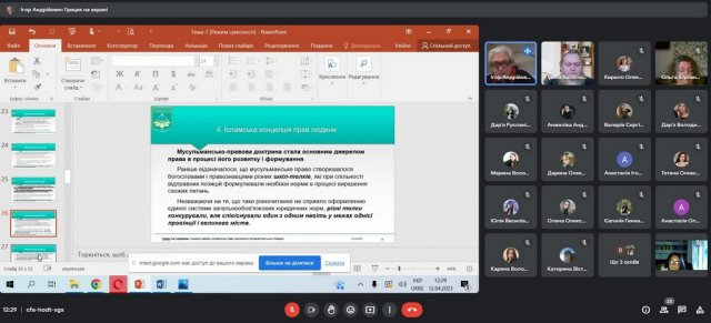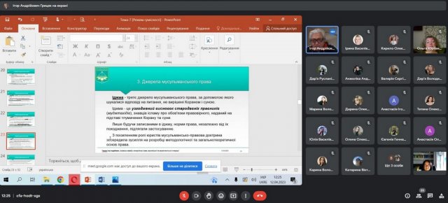 12 квітня 2023 року в рамках конкурсу на заміщення вакантних посад кафедри міжнародного права, європейської та євроатлантичної інтеграції відбулася відкрита (конкурсна) відеолекція професора кафедри міжнародного права, європейської та євроатлантичної інтеграції, кандидата юридичних наук, доктора наук з державного управління, професора, заслуженого діяча науки і техніки України Ігоря Андрійовича Грицяка для студентів І курсу спеціальності «Міжнародне право» (групи МПб-1-22-4.0д) з навчальної дисципліни «Історія міжнародного права» на тему «Формування норм міжнародного права на Арабському Сході, в країнах Африки та Америки» (змістовий модуль 2. «Міжнародне право в епоху Середньовіччя»). Лекція відбулася за навчальним розкладом академічної групи.