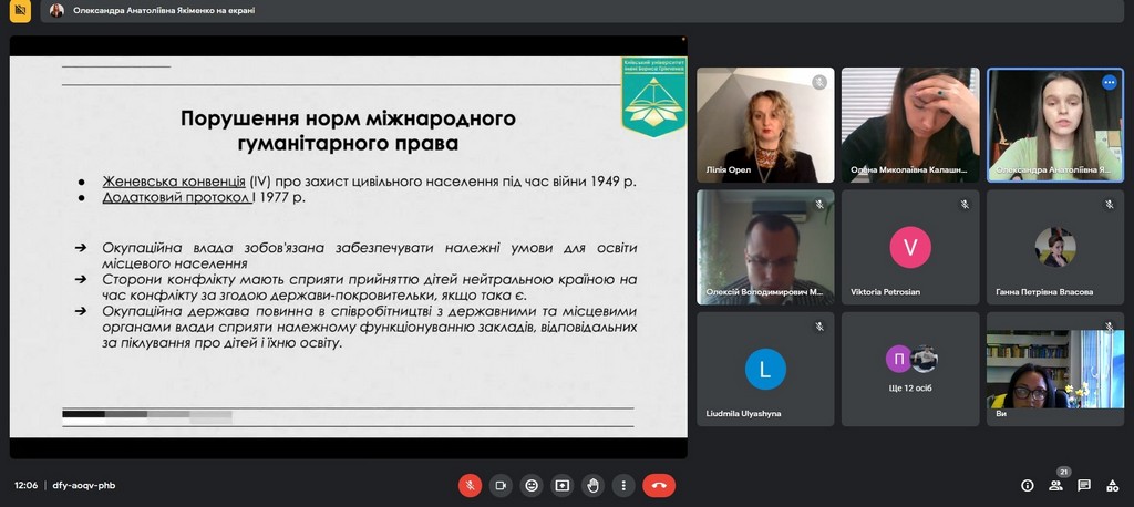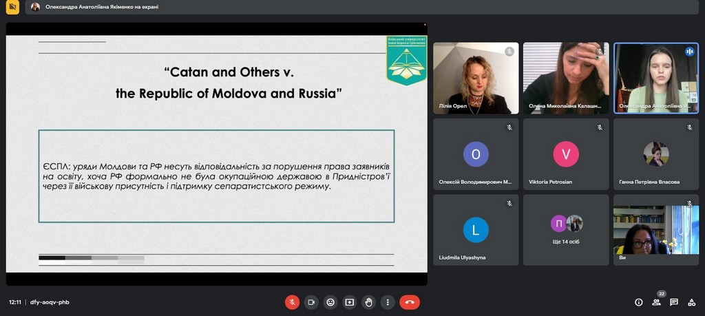 24 квітня 2023 року на Факультеті права та міжнародних відносин відбулася VI Міжнародна науково-практична конференція «Наукові розвідки актуальних проблем приватного та публічного права», організована кафедрами. Серед запрошених доповідачів були представники Великої Британії, Фінляндії, Чехії, Азербайджану, Литви, Грузії та Вірменії. В рамках секції «Проблеми регулювання відносин, пов’язаних з війною Росії проти України, та шляхи їх вирішення» виступили представники кафедри міжнародного права, європейської та євроатлантичної інтеграції. Зокрема, доцент кафедри, кандидат історичних наук Вікторія Вдовиченко презентувала своє науково-аналітичне досліджені з доповіддю «Уроки стійкості України: перспективи та виклики перед самітом НАТО у Вільнюсі». Серед студентів слово взяла Олександра Якіменко, студентка IV курсу спеціальності «Міжнародне право». Темою її доповіді стали «Проблеми та виклики забезпечення права на освіту на окупованих територіях (на прикладі України)», підготовленої під науковим керівництвом Інни Ворошилової, доцента кафедри міжнародного права, європейської та євроатлантичної інтеграції. Дякуємо організаторам за можливість комплексно висвітлити актуальні питання сьогодення та долучитись до обговорення сучасних викликів права та науки!