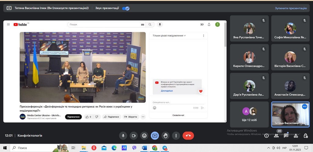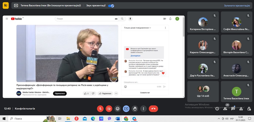 Студенти 2-го курсу ОП «Міжнародне право» відвідали прес- конференцію на тему “Дезінформація та геноцидна риторика: як Росія воює з українцями у медіапросторі?” в межах практичного заняття з «Конфліктології»