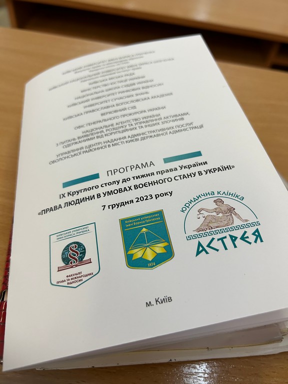 7 грудня 2023 року у Київському університеті імені Бориса Грінченка відбувся ІХ Круглий стіл до Тижня права України "Права людини в умовах воєнного стану в Україні". Організаторами виступили, зокрема Факультет права та міжнародних відносин та Юридична клініка «Астрея».