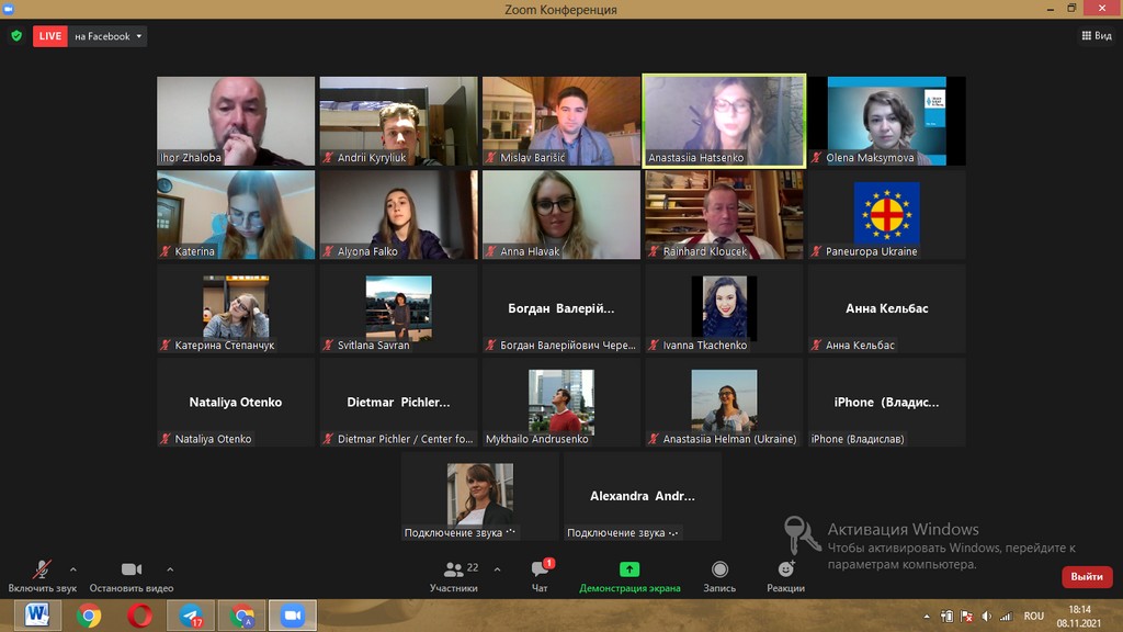 8 листопада 2021 року студенти освітніх програм «Суспільні комунікації» та «Регіональні студії» взяли участь в онлайн-зустрічі з представниками Пан’європейського союзу Хорватії в рамках проєкту «EU Vision: Expectations VS Reality», організованій молодіжним об’єднанням Пан'європа Київ, членами якого є наші студенти.