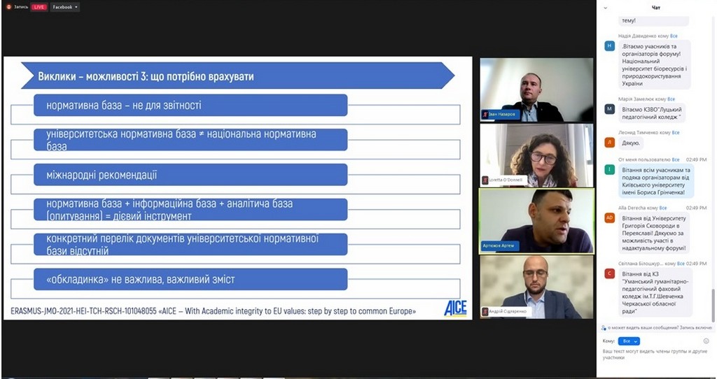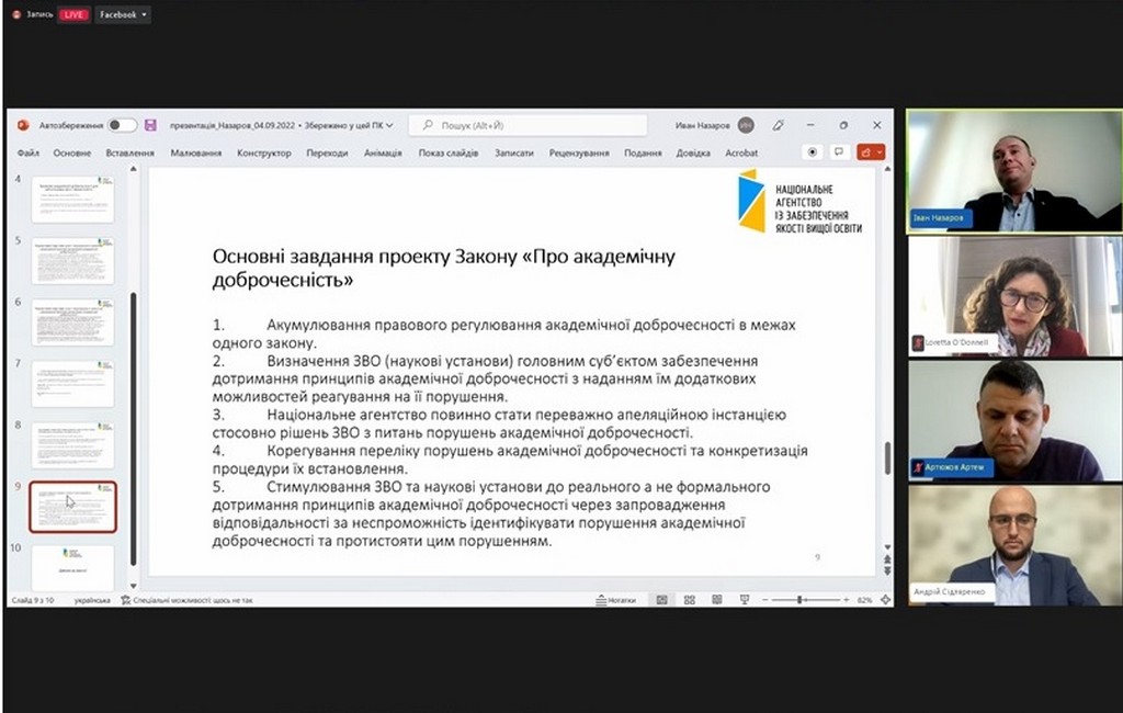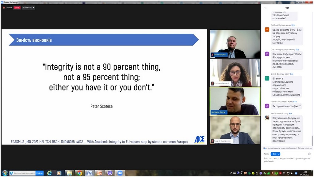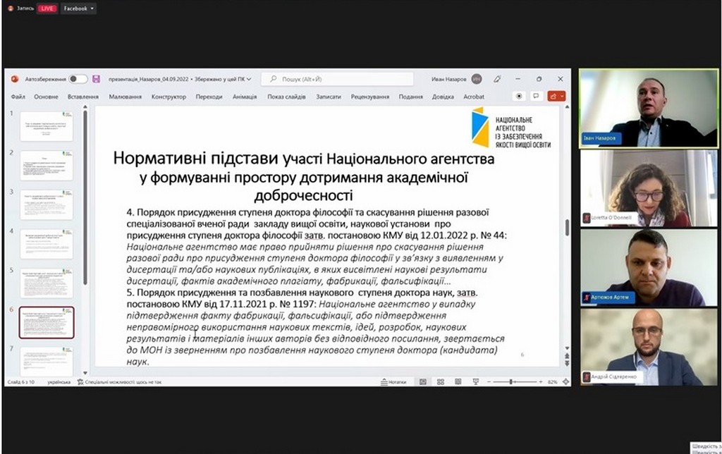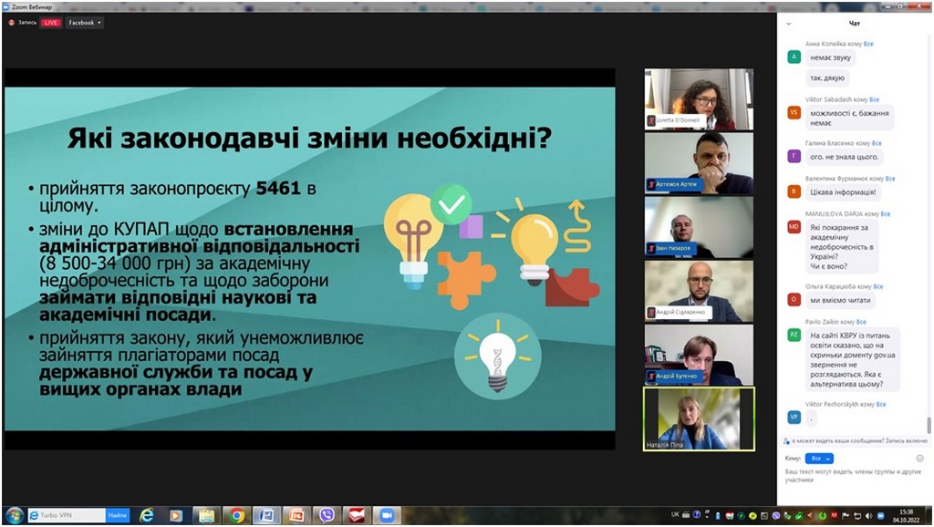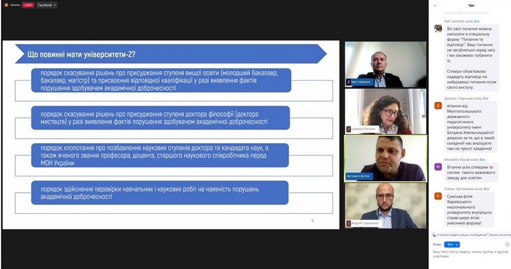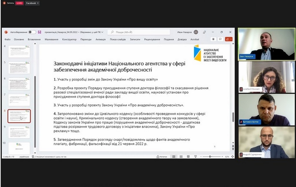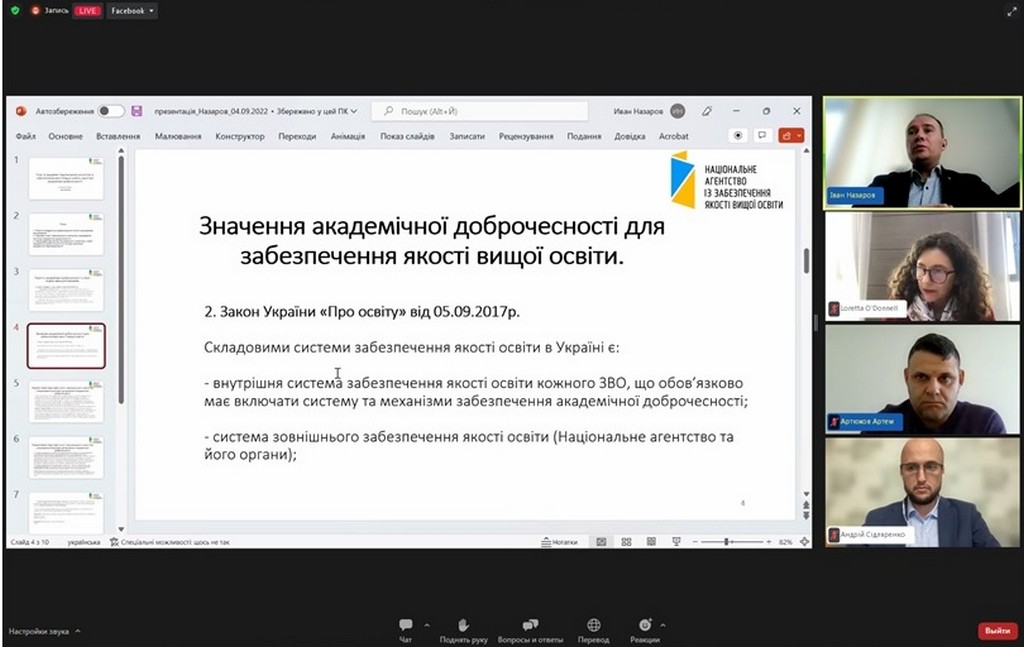 4 жовтня 2022 року кандидат юридичних наук, старший науковий співробітник, доцент кафедри Інна Ворошилова взяла участь у Форумі академічної доброчесності, організованому в онлайн-форматі Національним агентством із забезпечення якості вищої освіти і Unicheck та присвяченому нагальним питанням забезпечення академічної доброчесності в Україні та світі.
