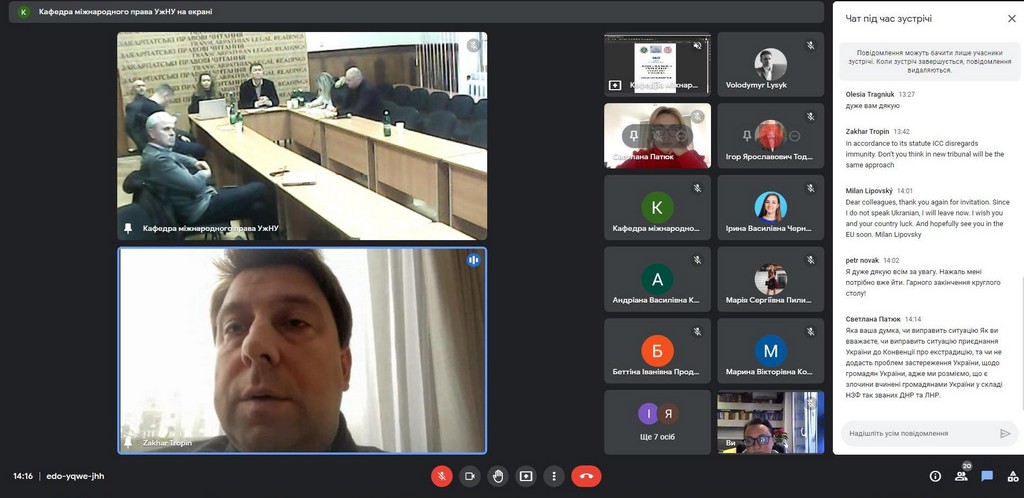 Участь у круглому столі також взяли юристи-міжнародники та викладачі ЗВО України, Чехії та Словаччини. Серед них - доктор юридичних наук, професор Тетяна Сироїд, професор кафедри Національного юридичного університету імені Ярослава Мудрого Олеся Трагнюк, доктор історичних наук, професор, професор кафедри міжнародних студій та суспільних комунікацій УжНУ Ігор Тодоров, доцент кафедри міжнародного права Інституту міжнародних відносин Київського національного університету імені Тараса Шевченка, адвокат Захар Тропін та інші.