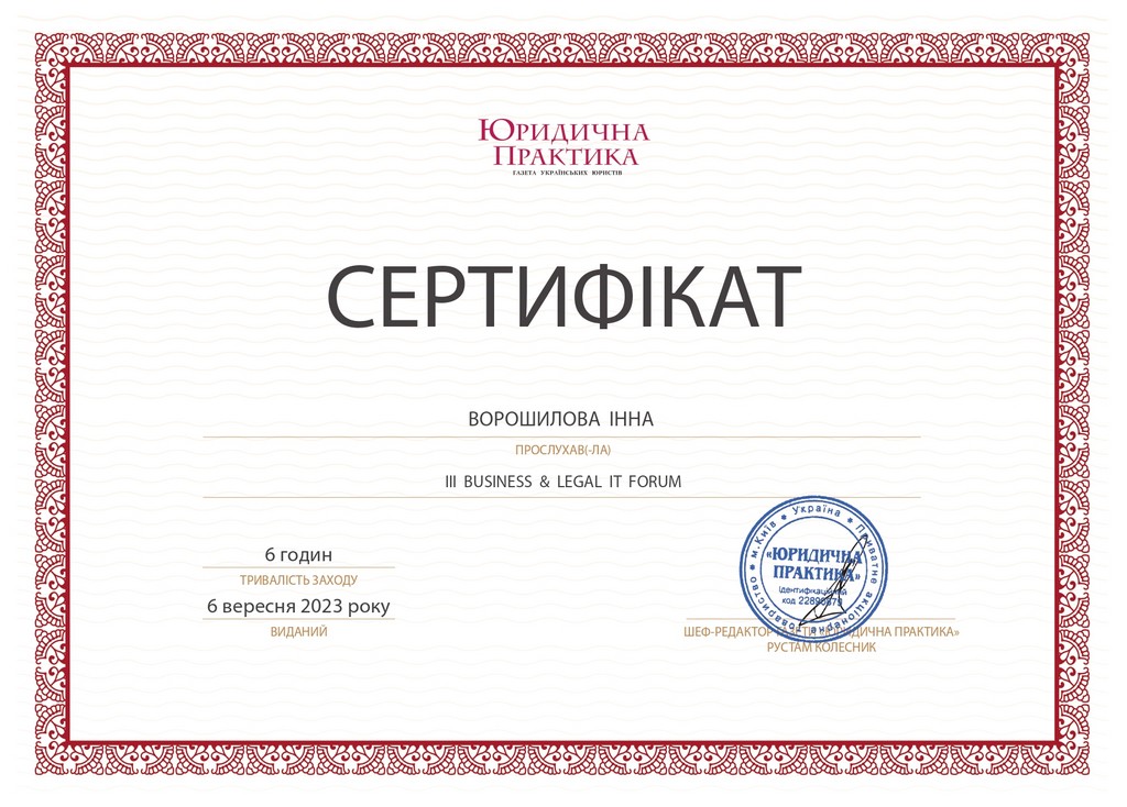 6 вересня 2023 року доценти кафедри міжнародного права, європейської та євроатлантичної інтеграції Інна Ворошилова та Ольга Шереметьєва долучилися до роботи IT Business & Legal Forum, організованого традиційно нашими давніми колегами з Професійної платформи Legal High School та газети "Юридична практика".