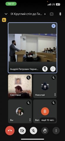 Засідання круглого столу відбувалося очно та з використанням сервісу Google Meet, завдяки чому до його роботи мали змогу доєднатися й закордонні учасники, зокрема, з Литви (студентка 4 курсу ОП "Міжнародне право" Лілія Невідомська, яка навчається у Вільнюському університеті за програмою академічної мобільності).