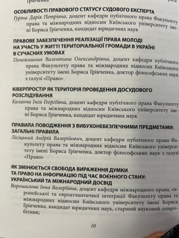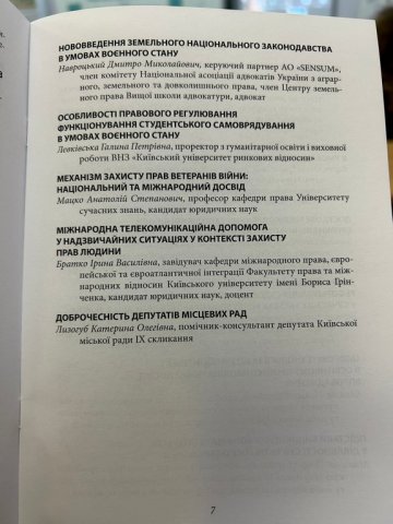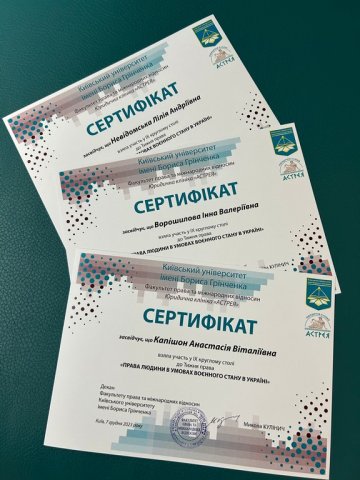 7 грудня 2023 року у Київському університеті імені Бориса Грінченка відбувся ІХ Круглий стіл до Тижня права України "Права людини в умовах воєнного стану в Україні". Організаторами виступили, зокрема Факультет права та міжнародних відносин та Юридична клініка «Астрея».