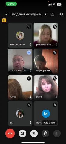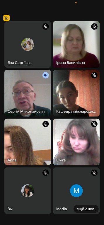 У засіданні кафедри взяли участь випускниця бакалаврату 2022 року, представниця Ради випускників ФПМВ Марія Лозицька, представниця Ради роботодавців ФПМВ, керівниця відділу Дослідницької служби Верховної Ради України Анна Кондратова, представниця студентства, студентка 3 року навчання спеціальності «Міжнародне право» Яна Мудрик.