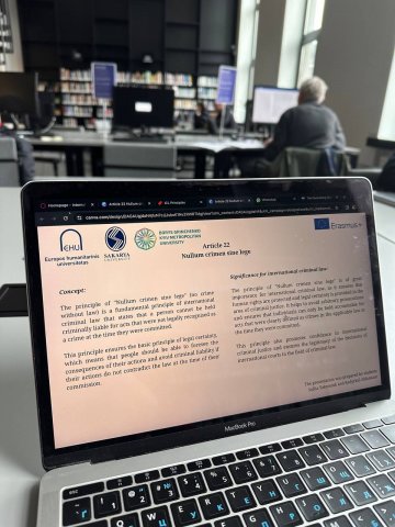 У другому семестрі 2023/2024 навчального року студентка 2 року навчання спеціальності "Міжнародне право" Софія Яким'юк здобуває знання за семестровою програмою академічної мобільності Erasmus+ в Європейському гуманітарному університеті (Литва, м. Вільнюс).