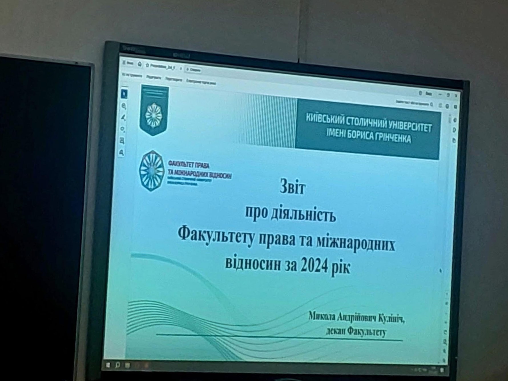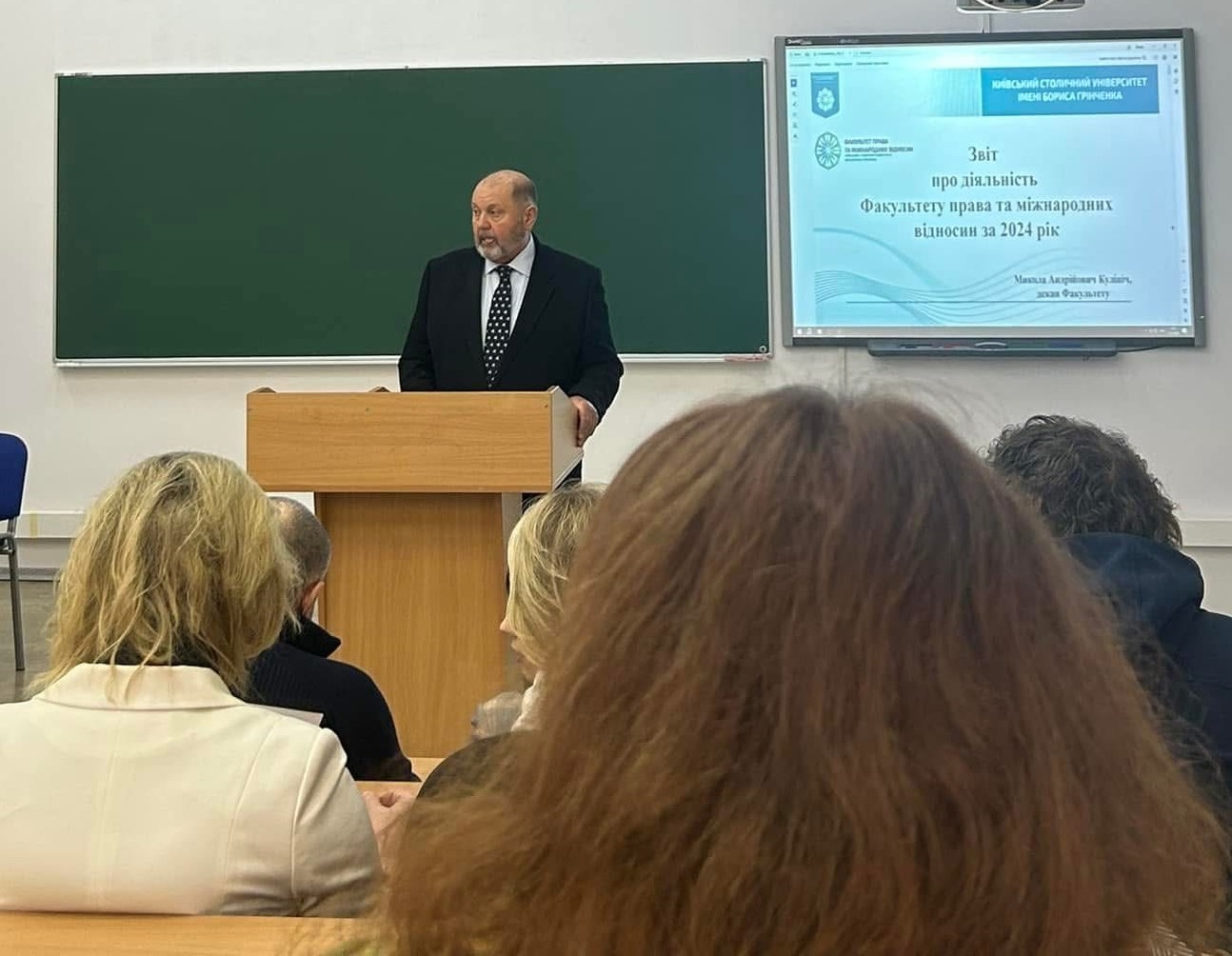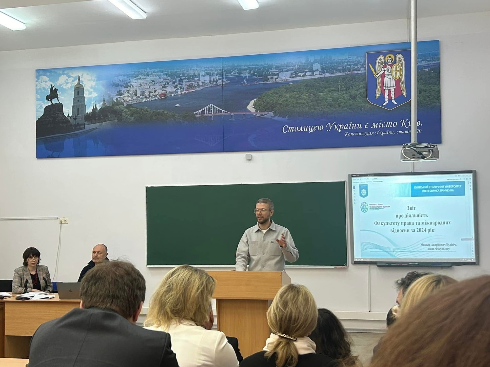 27 січня 2025 року співробітники кафедри міжнародного права, європейської та євроатлантичної інтеграції разом із делегованими студентами спеціальності «Міжнародне право» взяли участь у роботі Зборів трудового колективу Факультету права та міжнародних відносин Київського столичного університету імені Бориса Грінченка. Ключовим питанням порядку денного Зборів стало представлення деканом Миколою Кулінічем Звіту про діяльність Факультету права та міжнародних відносин за 2024 рік. У звіті було традиційно детально проаналізовано всі напрями діяльності Факультету, визначено місце ФПМВ у системі столичної освіти, науково-освітньому просторі України та світу, висвітлено реалізацію стратегії відкритості, а також визначено завдання колективу на 2025 рік. Після обговорення Звіт було позитивно оцінено та затверджено, а діяльність декана переважною більшістю голосів була визнано задовільною!