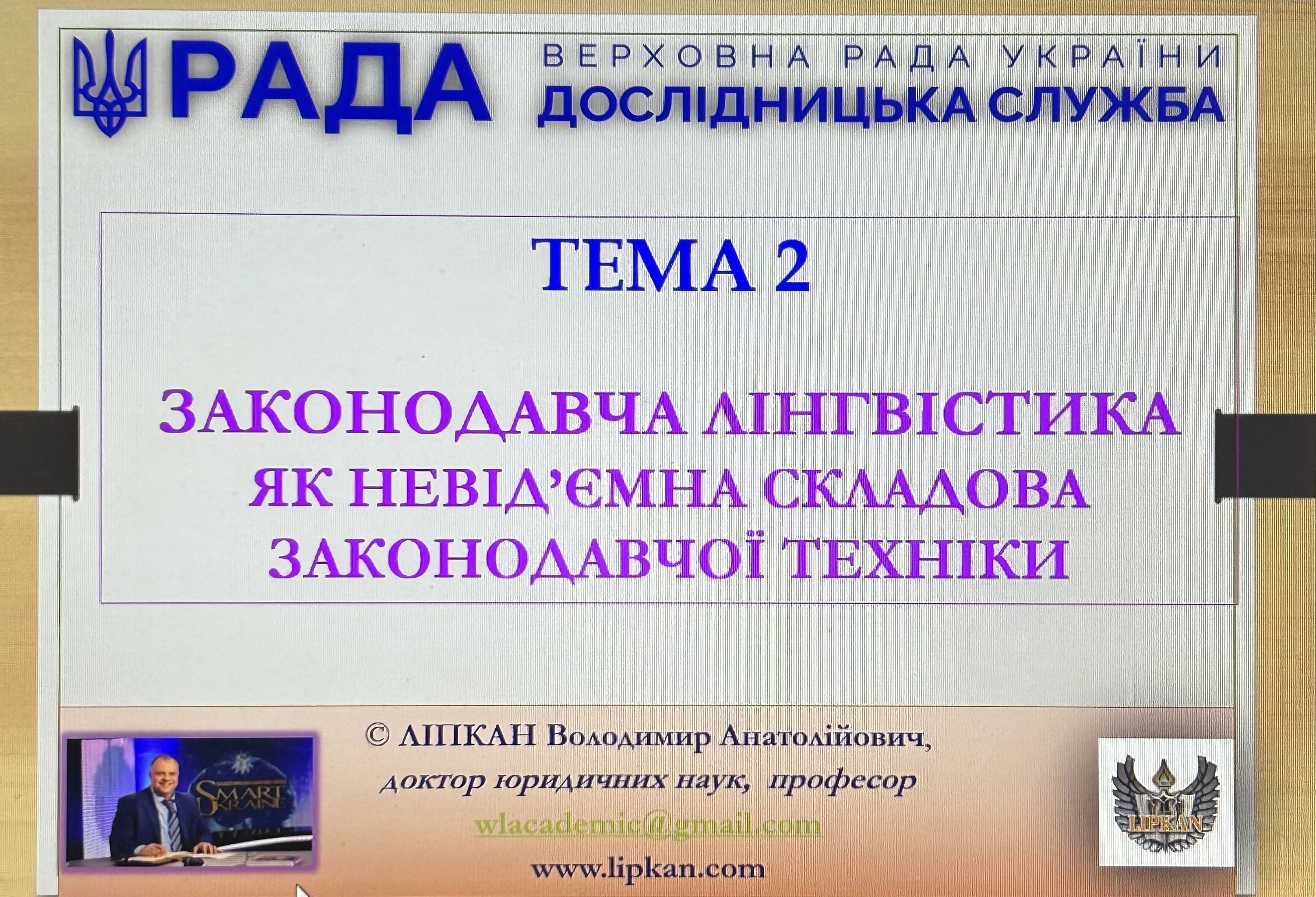 Курс включав детальний розгляд й вивчення таких питань, як правове регулювання питань мовної політики в Україні, лінгвістична компетентність законопроектувальника, законодавча лінгвістика як невідʼємна складова законодавчої техніки, мовні засоби та лінгвістичні інструменти законодавчої техніки, мова закону в категоріях законодавчої стилістики, розглядалися критерії якості законодавчого тексту, правові поняття та юридична термінологія як предмет юридико-термінологічного осмислення, правила створення законодавчих дефініцій, мовно-термінологічні проблеми сучасного законодавства, а також питання уніфікації та стандартизації термінології українського законодавства та лінгвістична експертиза законопроектів. Лектор-практик також поділився з учасниками тренінгу практичними рекомендаціями щодо дотримання мовностильових вимог і стандартів у тексті закону.