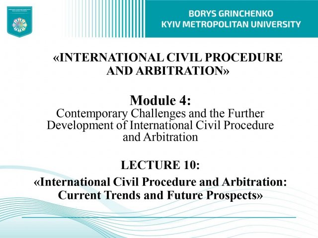31 березня 2026 р. доцент кафедри міжнародного права, європейської та євроатлантичної інтеграції, к.ю.н., Оксана Сергіївна Каспрук Екмен провела відкриту лекцію англійською мовою з дисципліни «Міжнародний цивільний процес та арбітраж» для студентів спеціальності 293 Міжнародне право англійською мовою на тему «International Civil Procedure and Arbitration: Current Trends and Future Prospects». Лекторка прочитала цікаву та змістовну лекцію, активно спілкувалась з студентами, представила різноманітні презентаційні матеріали, спиралась на практичний досвід та наукові дослідження за цією тематикою. Оксана Сергіївна продемонструвала високій рівень педагогічної майстерності та творчій підхід до проведення лекційних занять.