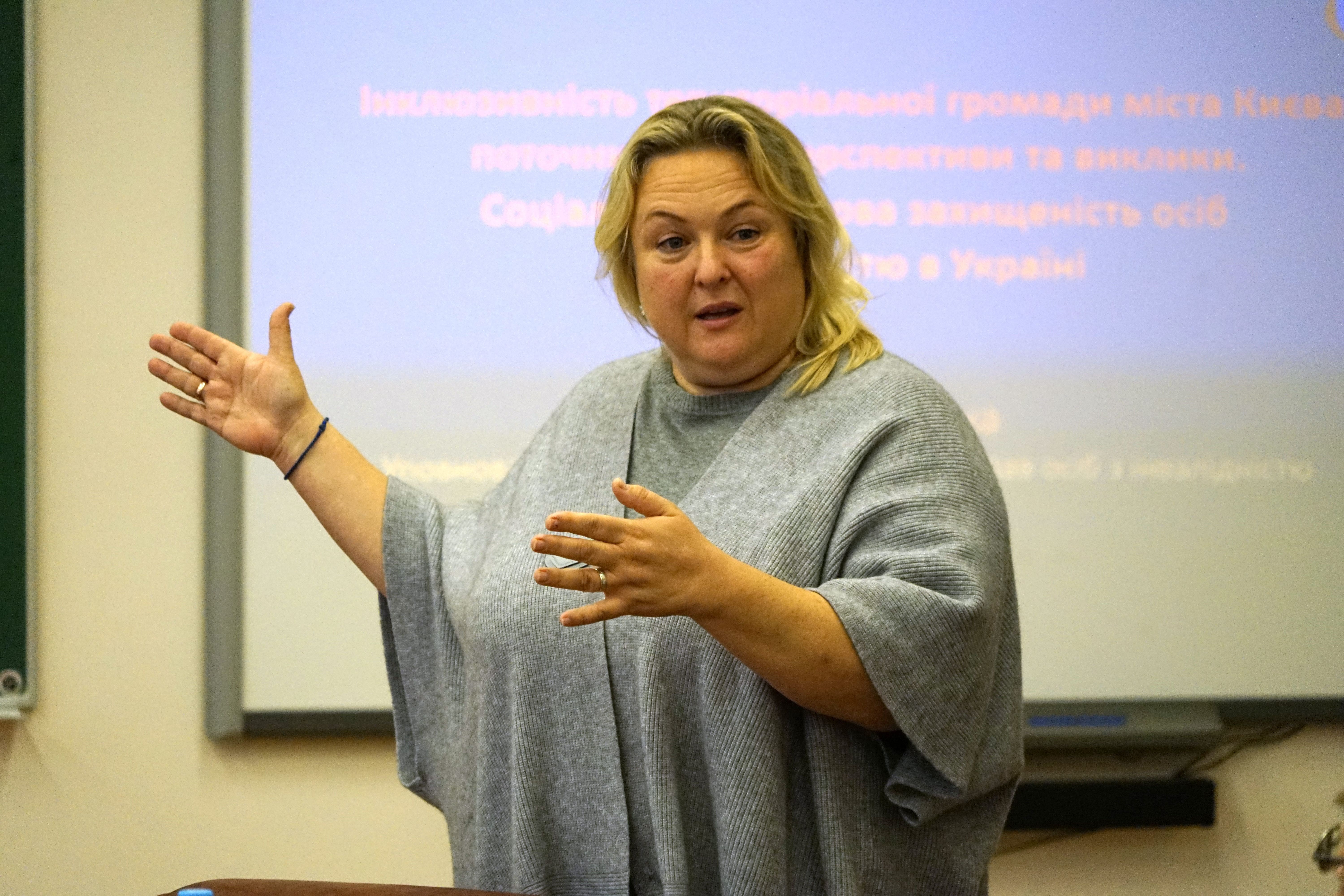 Завершився захід виступом керівника соціального проєкту «Київ без меж», здобувача 4 курсу бакалаврату КСУБГ за спеціальністю «Міжнародне право» Кирила Мусієнка та здобувача 1 курсу магістратури КСУБГ за спеціальністю «Міжнародне право» Влади Халявінської, присвяченим тематиці імплементації Україною Конвенції ООН про права осіб з інвалідністю. В рамках свого виступу, керівник проєкту, зокрема, закликав студентів долучатися до збору даних про доступність закладів та установ столиці через спеціальну форму, яка була розроблена командою «Київ без меж» спільно з партнерами із комунального підприємства «Головний інформаційно-обчислювальний центр» та КМДА для подальшого перенесення отриманої інформації до Мапи доступності у застосунку «Київ. Цифровий».