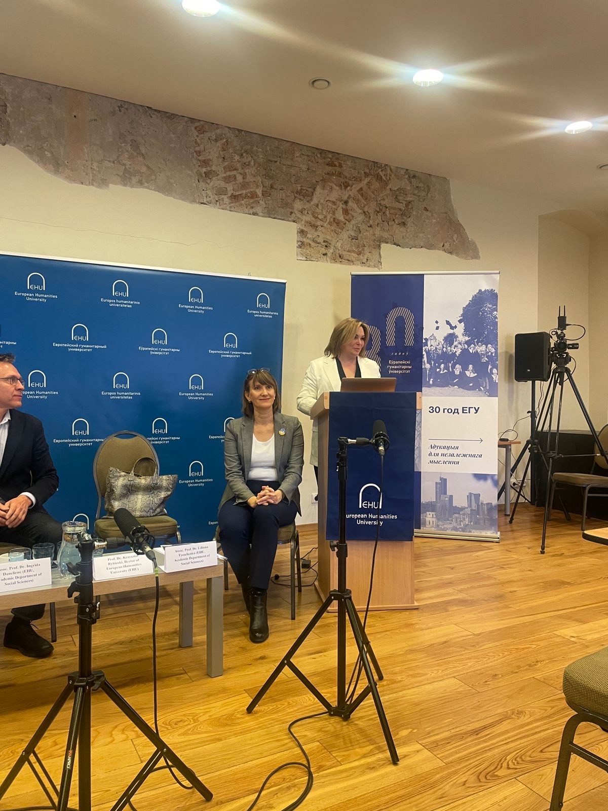 15-19 травня 2023 року завідувач кафедри публічного права, доктор юридичних наук, професор, заслужений діяч науки і техніки України Власова Г.П. виступила із гостьовими лекціями у Європейському гуманітарному університеті (EHU, Вільнюс, Литва) та взяла участь у міжнародній студентській конференції на тему: "Європа 2023: виклики та можливості сьогодення очима майбутніх спеціалістів" (Europe 2023: Challenges and Opportunities of the Present Through the Eyes of Future Professionals), яка відбулася 19 травня 2023 р. у м. Вільнюс, Литва. Науково-викладацька інтернаціоналізація відбулася в рамках програми Еразмус+ та договору про мобільність персоналу для викладання та навчання. Окрім наукового-педагогічної діяльності Г. Власова провела зустріч із департаментом соціальних наук, де сторони обговорили питання подальшої співпраці над спільними науковими проєктами, реалізації академічної мобільності студентів та викладачів, організації та проведення літньої школи.