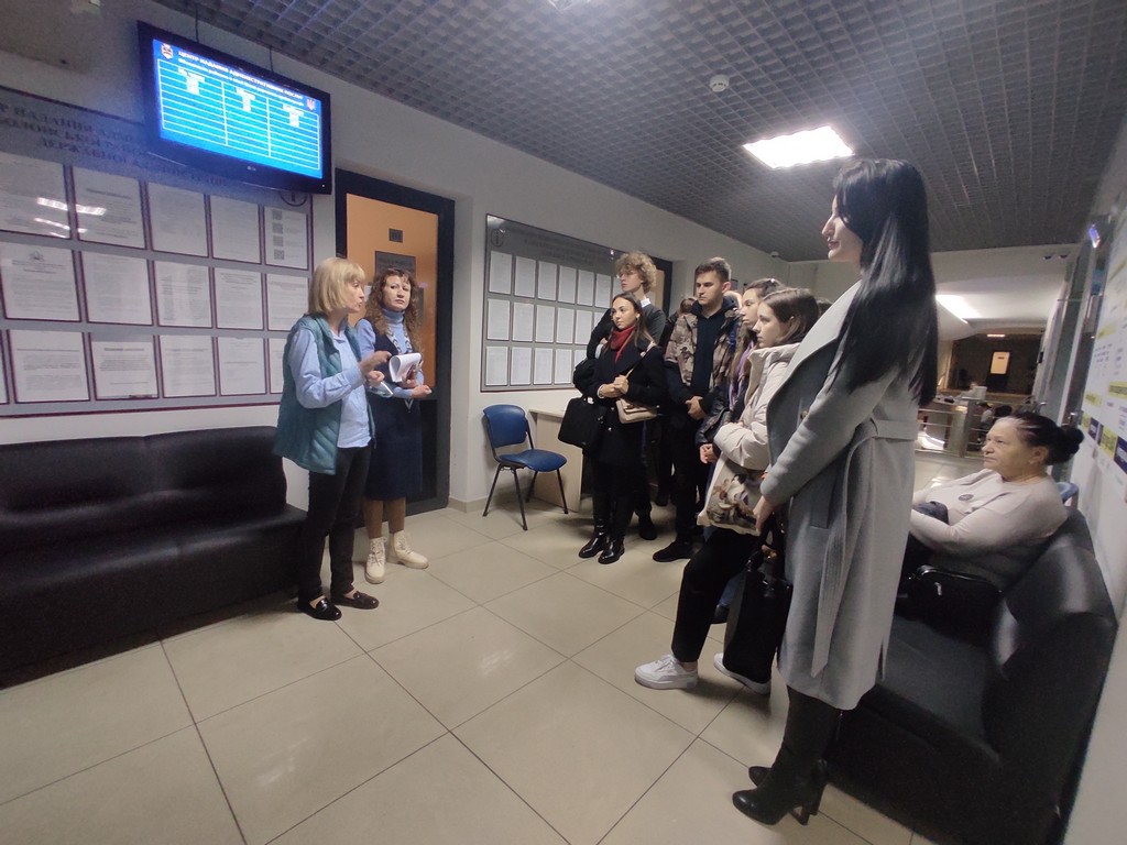 8 листопада 2023 року студенти першої групи четвертого курсу денної форми навчання спеціальності «Право» першого (бакалаврського) рівня вищої освіти в рамках вивчення навчальної дисципліни «Адміністративні послуги в органах місцевого самоврядування» разом з викладачем навчальної дисципліни – доктором юридичних наук, професором кафедри публічного права Сергієнко Н.А. та керівником Юридичної клініки КУБГ «Астрея», кандидатом юридичних наук, доцентом кафедри публічного права, доцентом Чернегою А.П. відвідали Центр надання адміністративних послуг Оболонської РДА в м.Києві (надалі – ЦНАП).