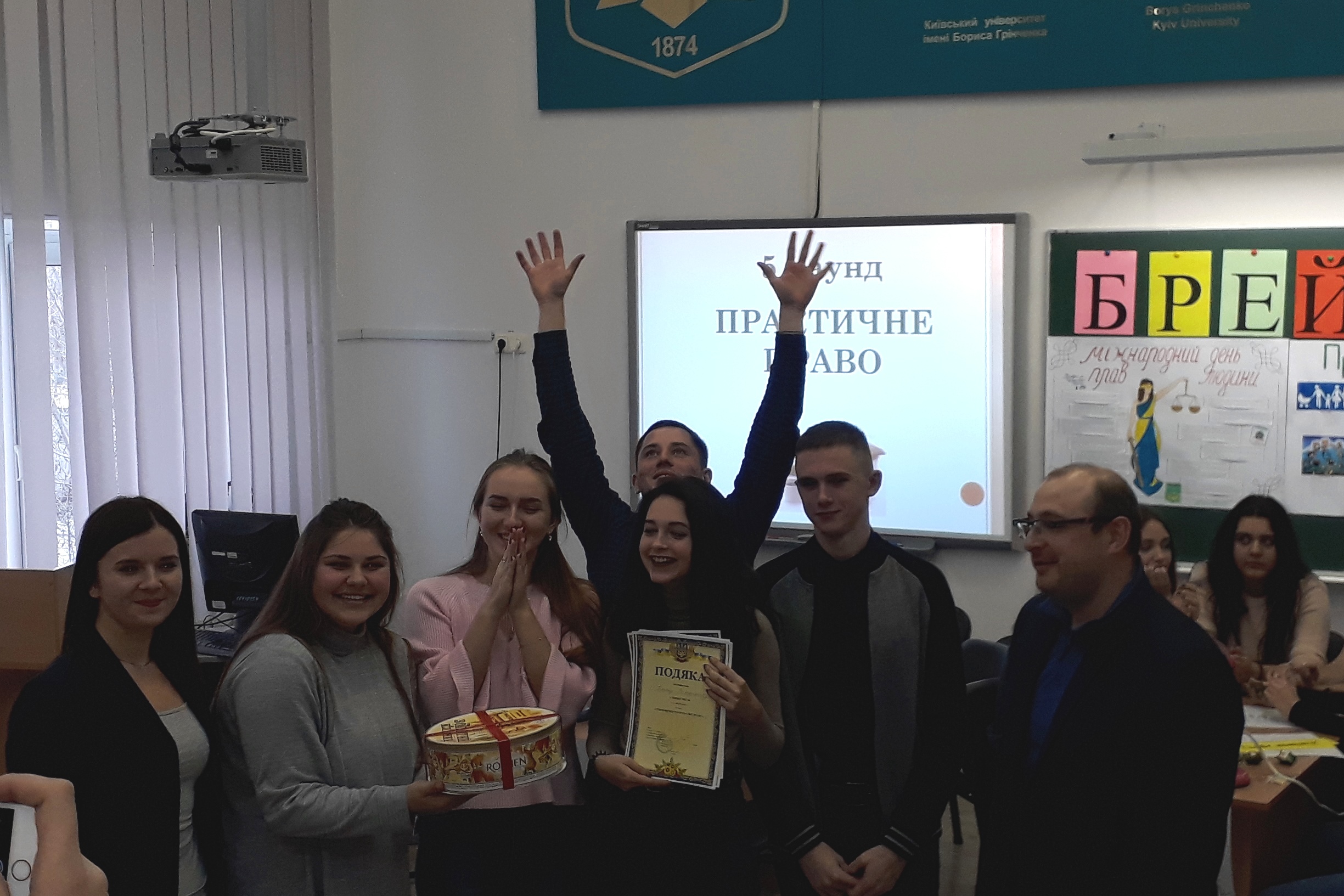 7 грудня 2018 р. в Київському Університеті імені Бориса Грінченка в рамках Грінченківської декади та Тижня права пройшла пізнавально-інтелектуальна гра Брейн-ринг на тему: «Грінченківці знають свої права» між студентами спеціальності «Право» Факультету права та міжнародних відносин і Університетського коледжу. Захід був спрямований на наукове та пізнавальне сприйняття можливостей і обов’язкової міри поведінки студентів-грінченківців у суспільстві та під час навчання.