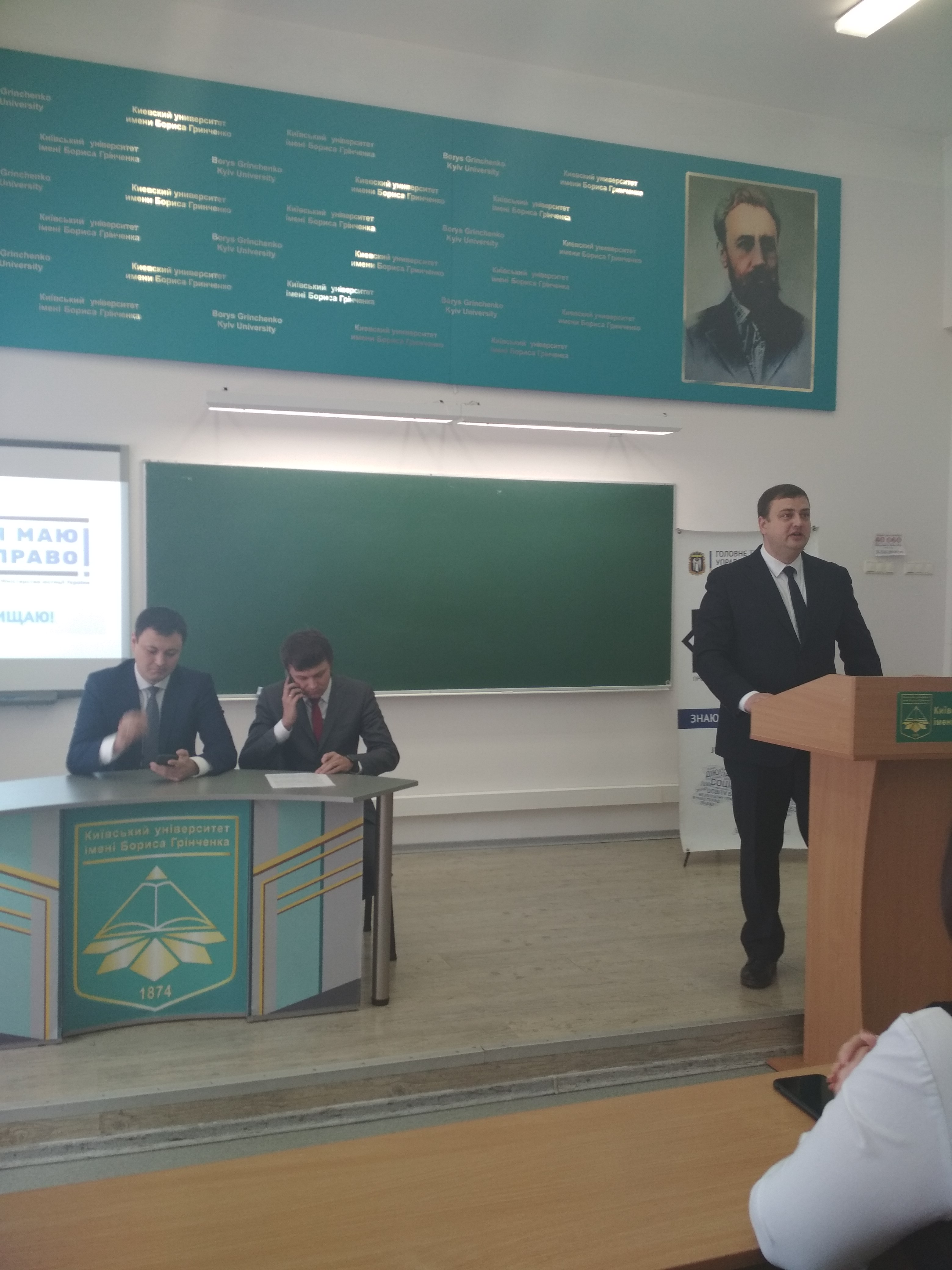 Захід розпочався зі вступного слова декана Факультету права та міжнародних відносин, доктор наук з державного управління, професора, заслуженого діяча науки і техніки України – Грицяка І.А. Учасниками заходу були: начальник Головного територіального управління юстиції у місті Києві – Куценко С.І., народний депутат України – Алексєєв І.С., а також працівники Головного територіального управління юстиції в місті Києві.