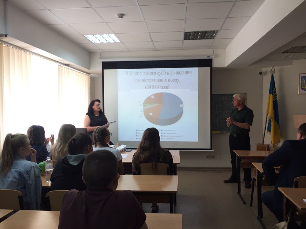 Лілія Боршуляк виступила із презентацією, звернувши увагу студентів на тому, що більше ніж 50 мільйонів громадян України щороку звертаються за отриманням тих чи інших адміністративних послуг. І поки що, на жаль, ця система не працює, як треба. Люди готують купу довідок та витрачають безліч зайвого часу, який вони могли би використати на щось більш корисне і важливе для себе.Кожен українець заслуговує отримувати якісні швидкі адміністративні послуги з мінімумом документів та часу і, звичайно, хорошим сервісом. Як казав колись Герхард Шредер, бігати мають дані, а не громадяни! І ми вже рухаємось у цьому напрямку. Станом на травень 2019 року в Україні вже функціонуєпонад750 сучасних центрів надання адміністративних послуг, і їхня кількість постійно збільшується. Якісні та сучасні адміністративні послуги така ж невід’ємна частина нас, як доступна медицина чи освіта. У 2012-му в Україні налічувалося всього 45 ЦНАПів, а за підсумками 2018-го їх уже налічувалося 746. Дуже важливо, підкреслила начальник управління, що йдеться не тільки про збільшення кількості, а й про підвищення якості та швидкості надання послуг.