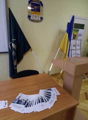 В межах плану профорієнтаційної роботи Факультету, старший викладач кафедри англійської мови Факультету права та міжнародних відносин Кушевська Наталія Миколаївна провела зустріч з учнями 10-11 класів Гімназії № 191 імені П.Г.Тичини (м. Київ). Під час зустрічі були представлені друковані рекламні матеріали та відео презентації про Київський університет імені Бориса Грінченка та Факультет права та міжнародних відносин.
