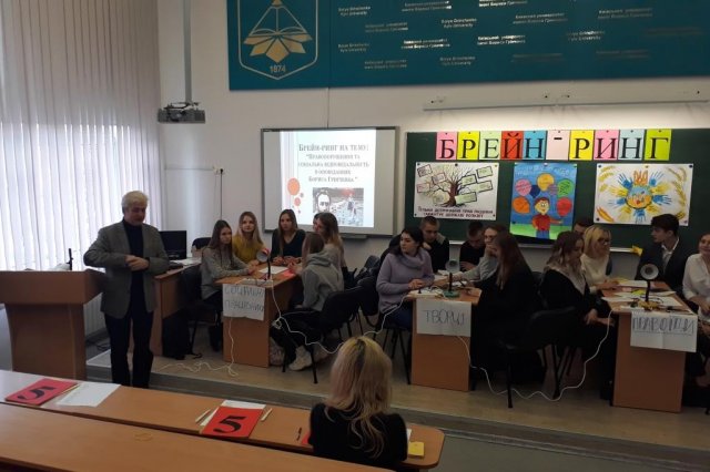 4 грудня 2019 р. в рамках Грінченківської декади було проведено гру «Брейн-ринг» на тему «Правопорушення та соціальна відповідальність в оповіданнях Бориса Грінченка», спрямована на наукове та пізнавальне дослідження правопорушень і соціальної відповідальності людини в оповіданнях Бориса Грінченка.