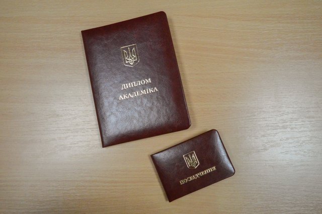Урочисте вручення диплому президентом Академії Станіславом Ісаковичем Табачніковим та віце-президентом Академії Раду Георгійовичем Процюком відбулося в Національному педагогічному університеті імені М.П. Драгоманова.