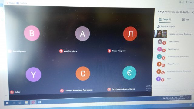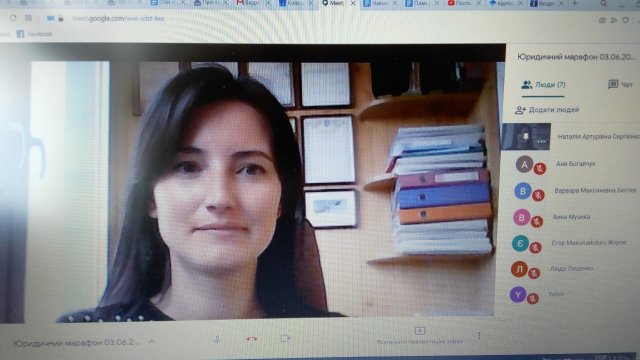 03.06.2020 на платформі Гугл міт старший викладач кафедри публічного та приватного права к.ю.н. Сергієнко Наталія Артурівна провела Юридичний марафон "Сучасний судовий процес". В марафоні взяли участь викладачі та студенти.